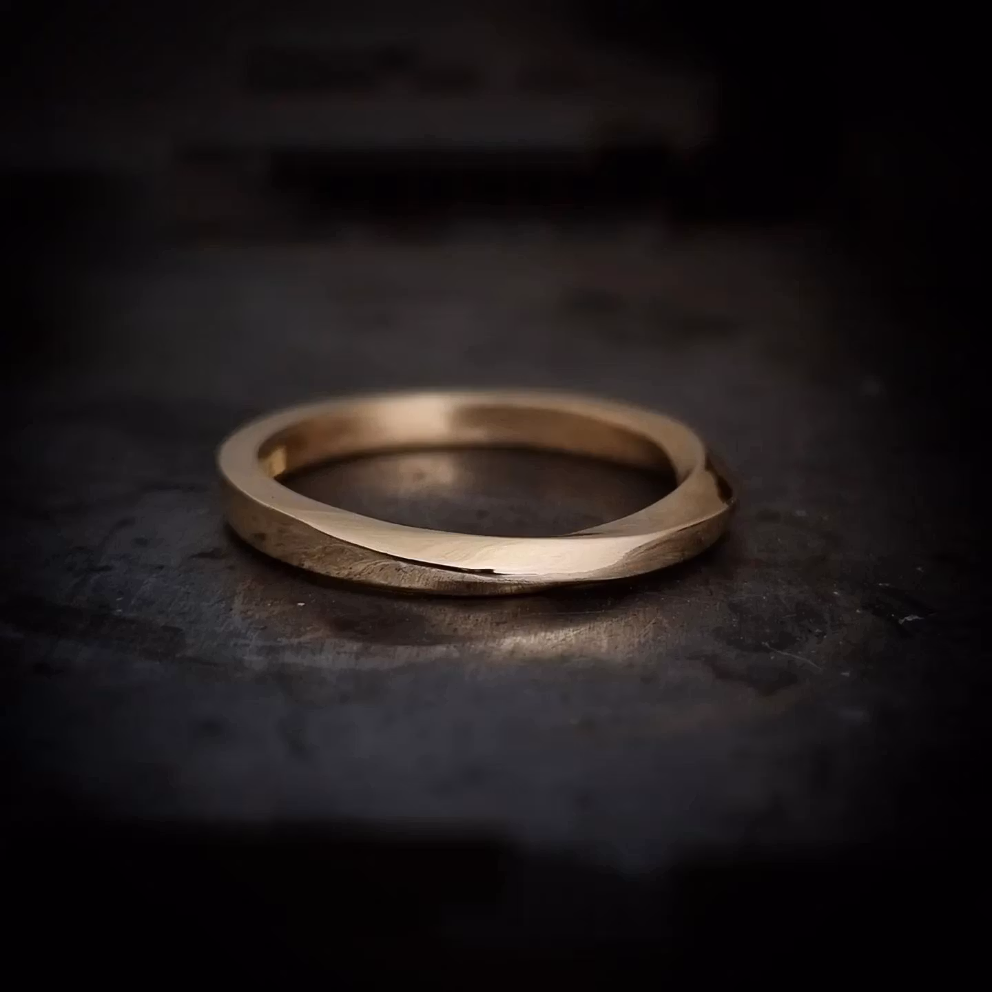 1. Ring med vriden profil "Twist", tillverkas på beställning (modellen syns på bild, något grövre mått). Storlek 16,5. Mått på skenan ca 1,8 x 1,7 mm.