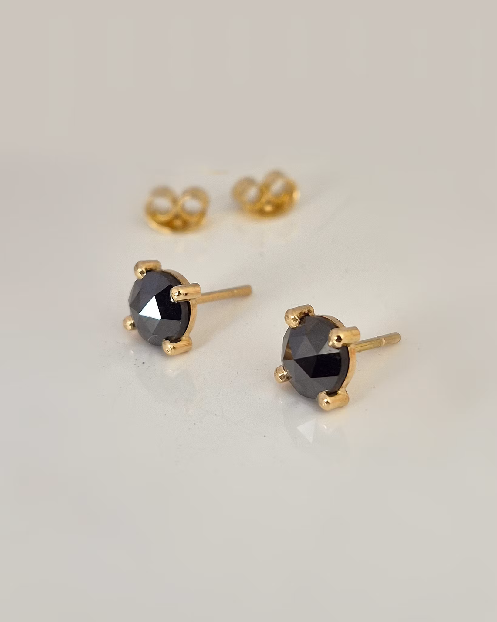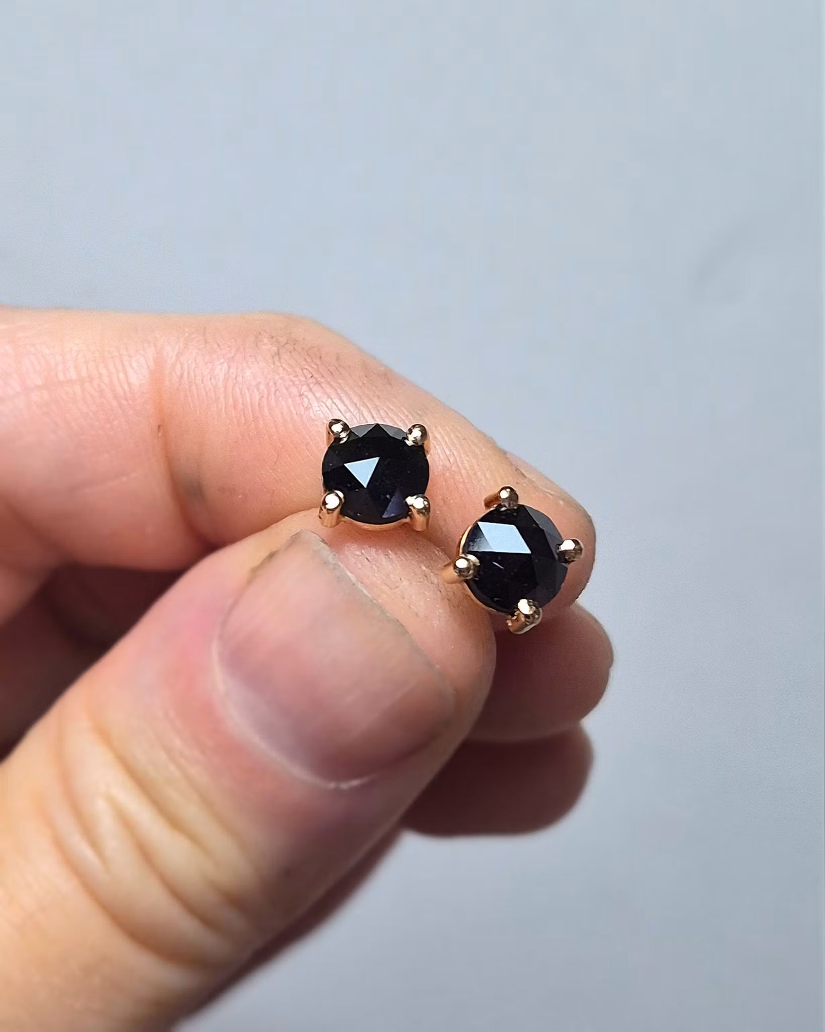 Dessa vackra Diamanter är naturligt svarta och stilrena med sitt eleganta gnister. Dom mäter ca 6,4 mm i diameter och väger totalt 1,87 carat.