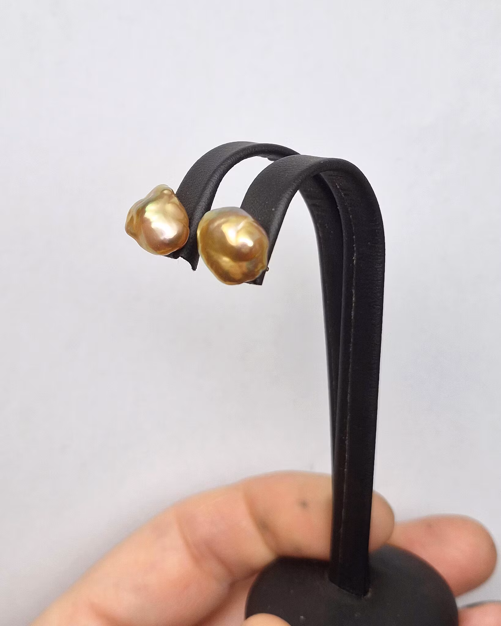 Jätteläckra äkta odlade Sötvattenspärlor med en slags keshiform. Pärlorna är obehandlade och naturliga i färgen.