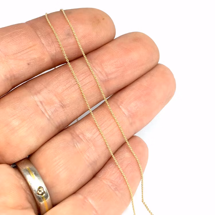 Rund ankarlänk i 18 K guld. Kedjan mäter från 0,9 mm och finns tillgänglig i olika längder och grovlekar. Söker du andra längder eller grovlekar än lagerförda, vänligen skicka ett mail till [email protected] så tar jag hem det du önskar. Lagerförda kedjor kommer dagen därpå.