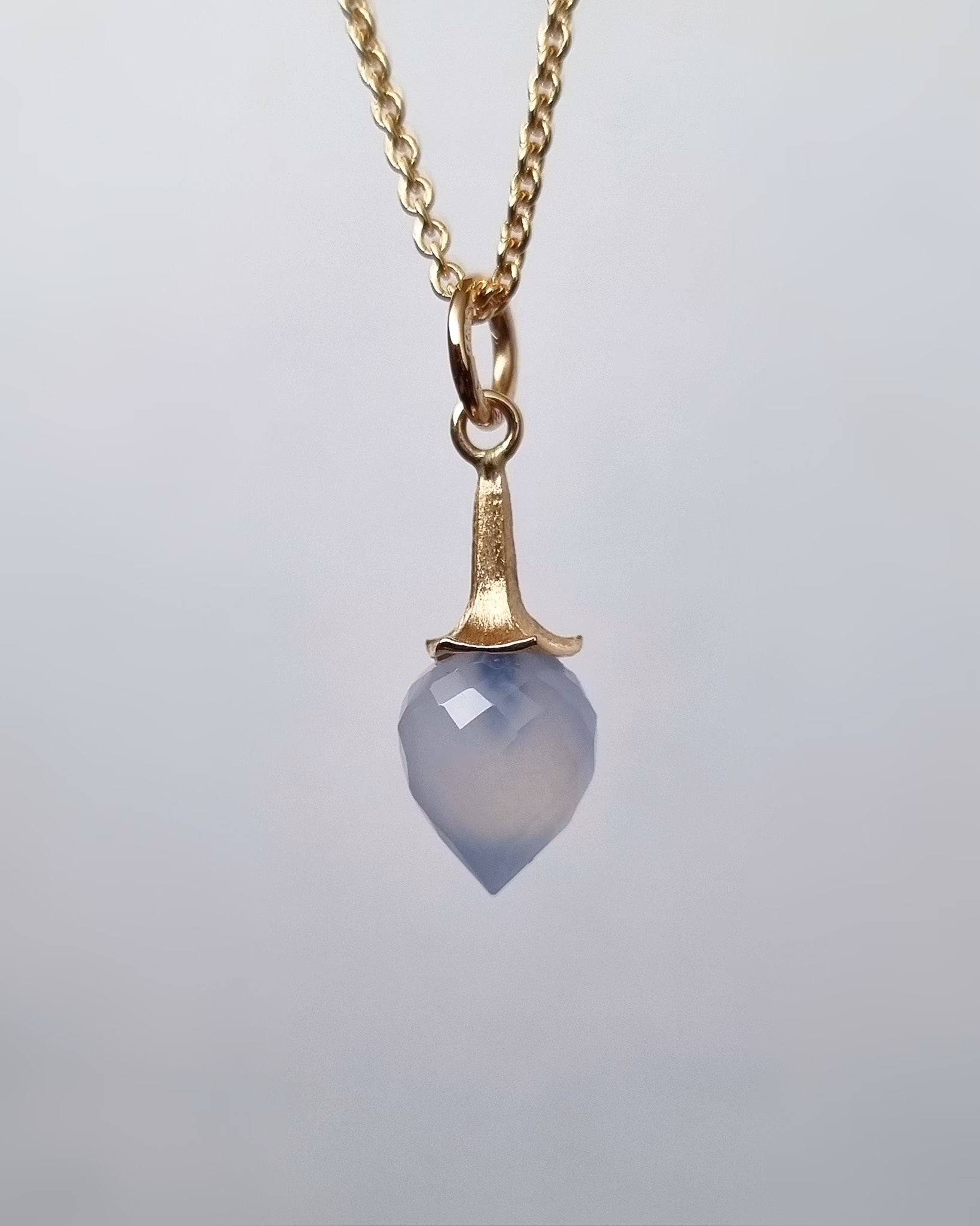 Änglatrumpet med isblå Kalcedon - hänge i 18K guld