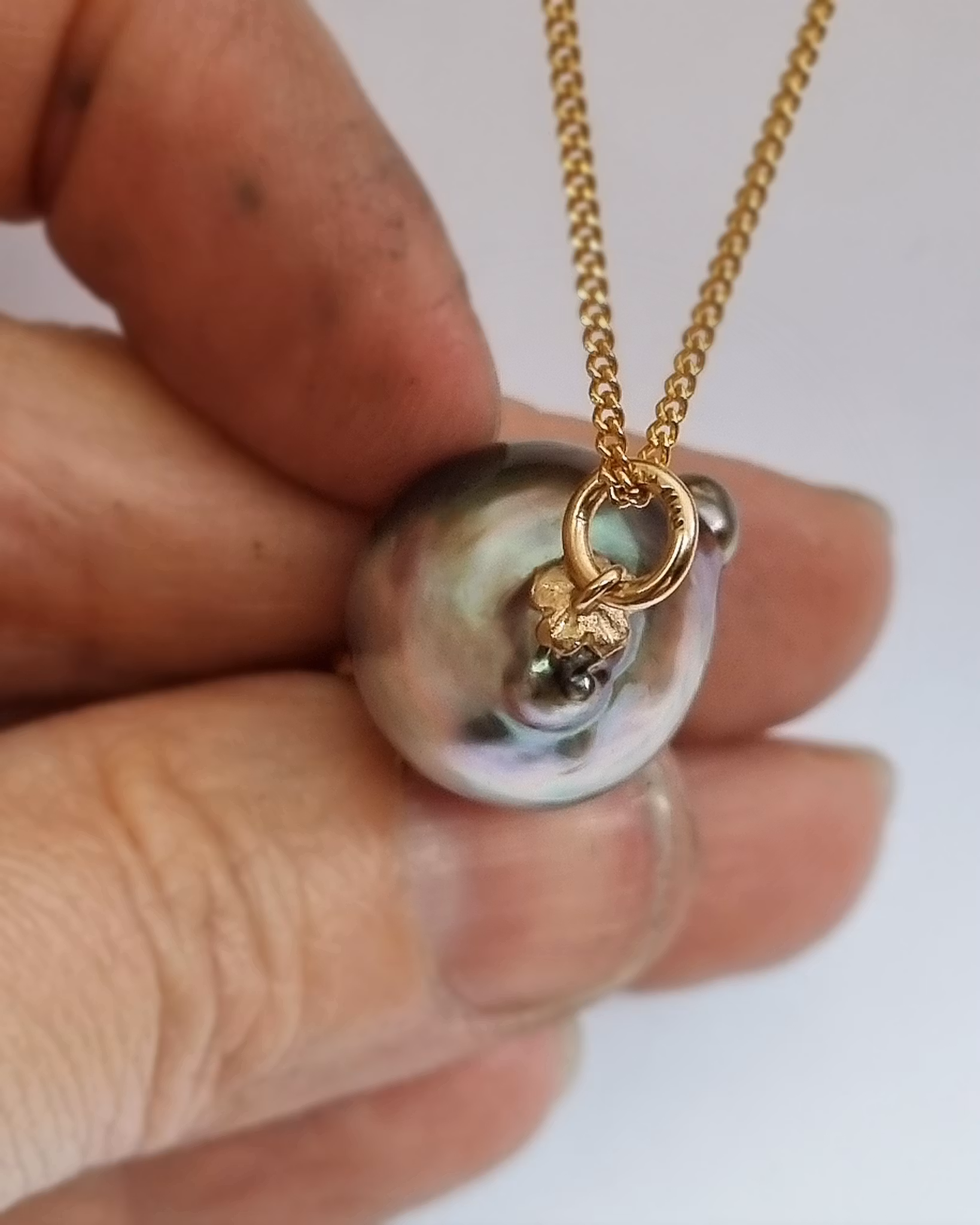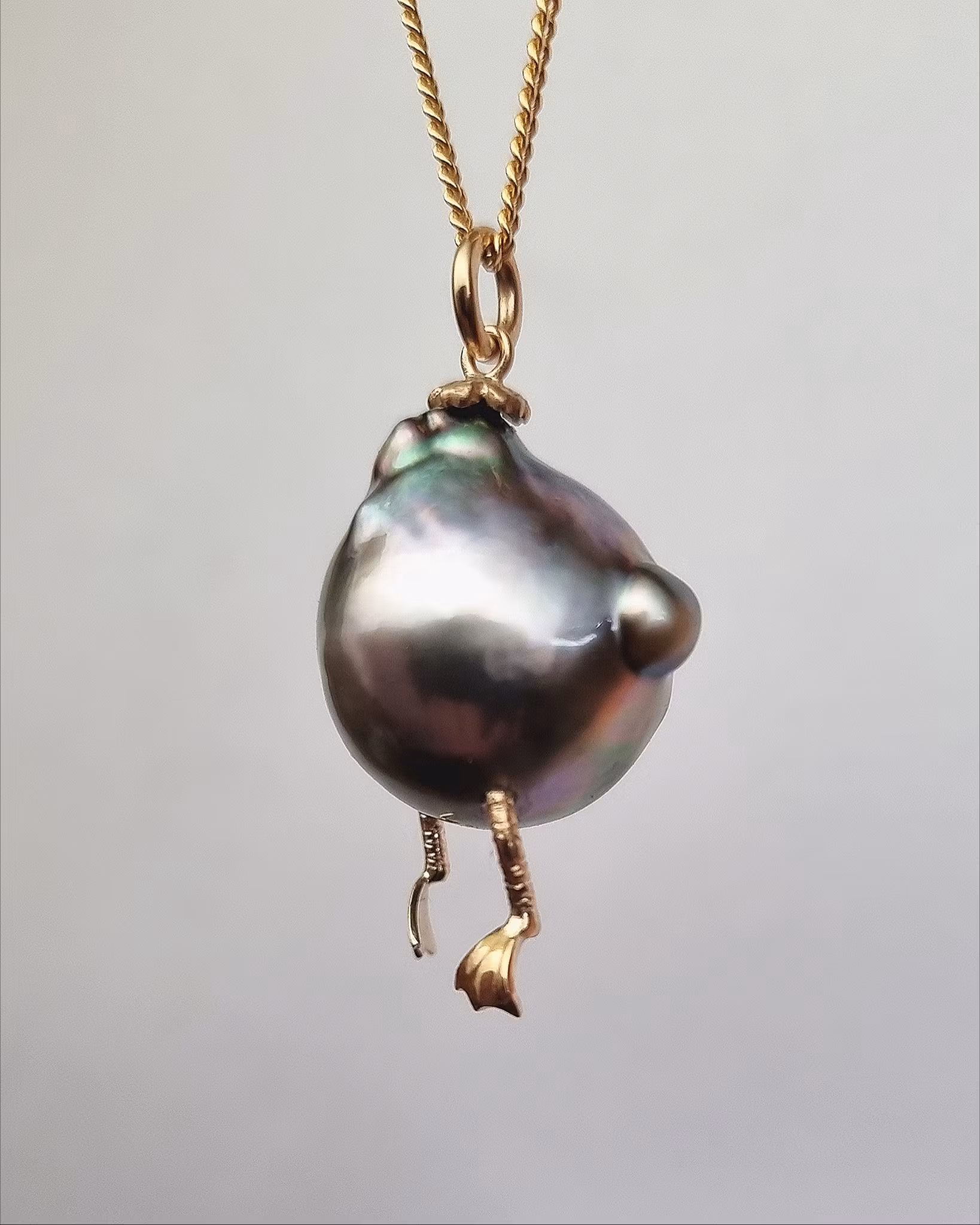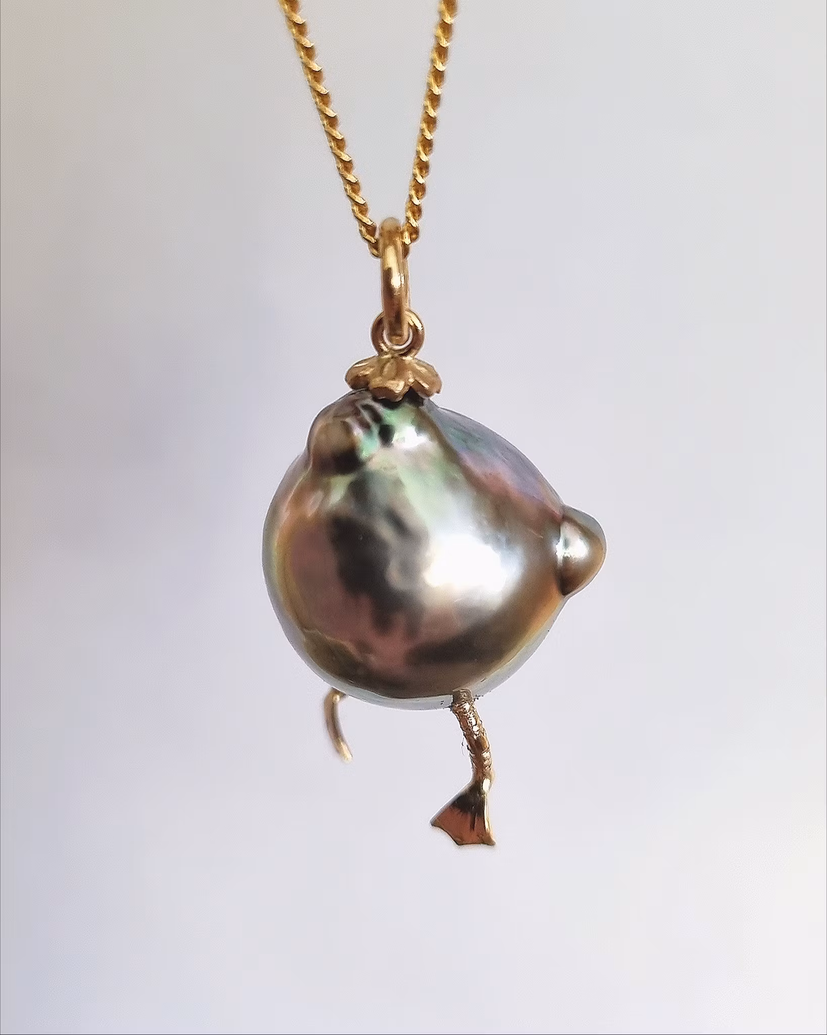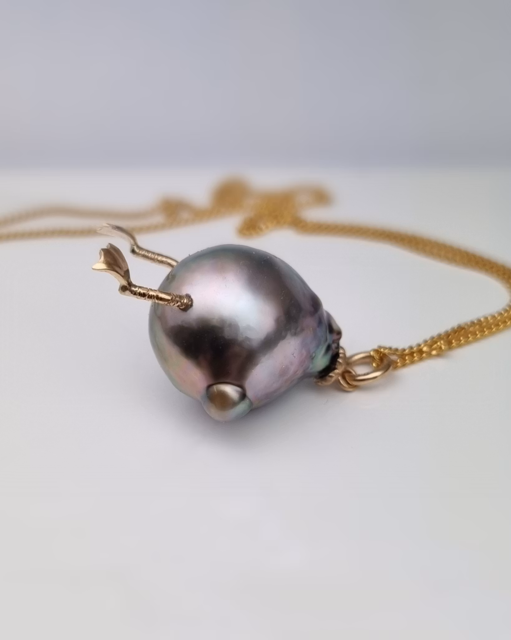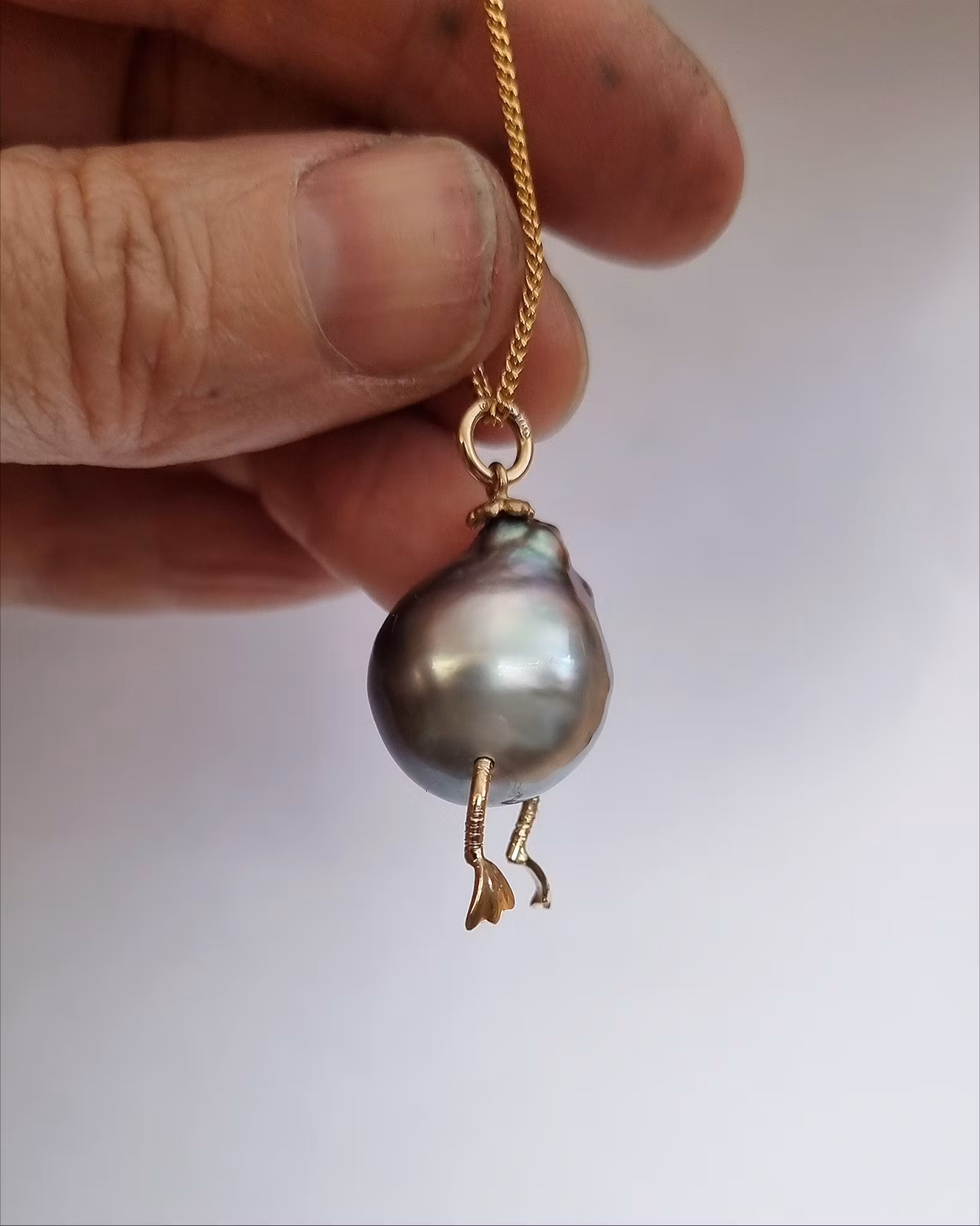 Barock, unik och kanske något fågellik Tahitipärla med handgjorda detaljer.