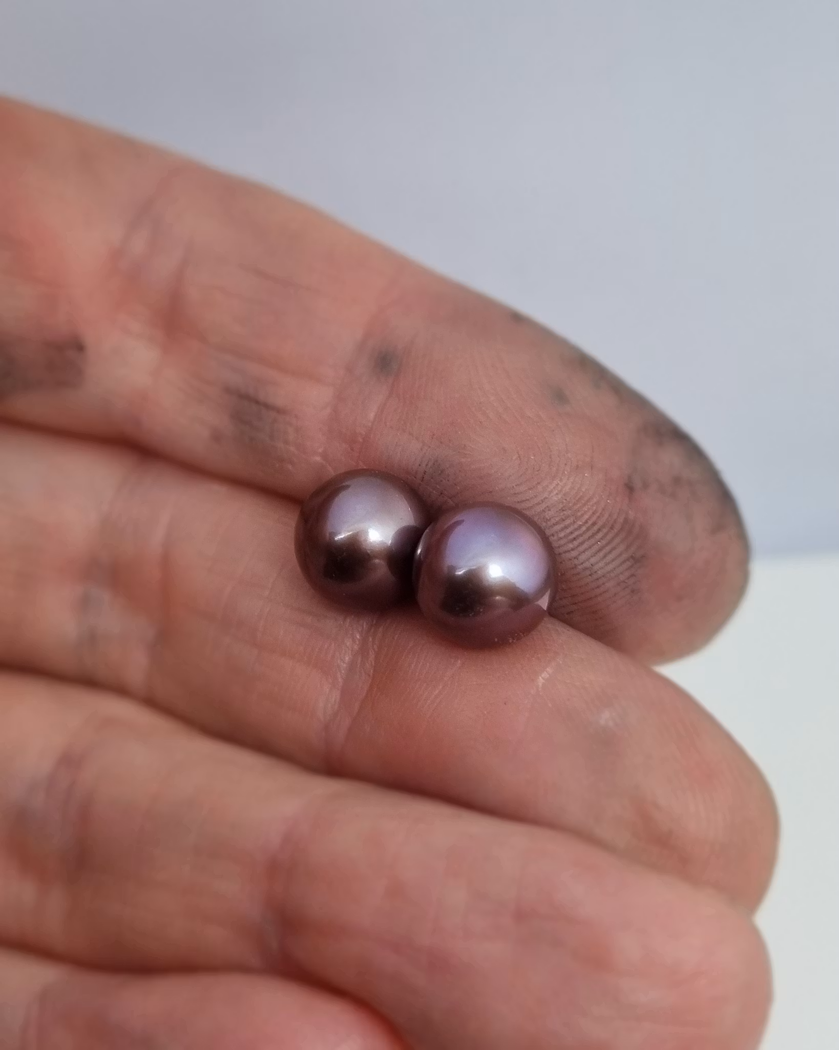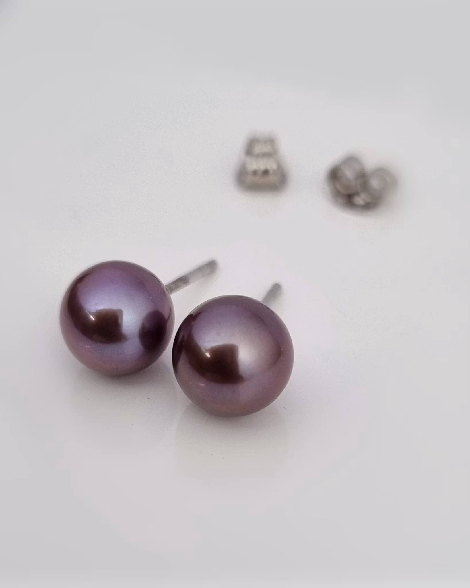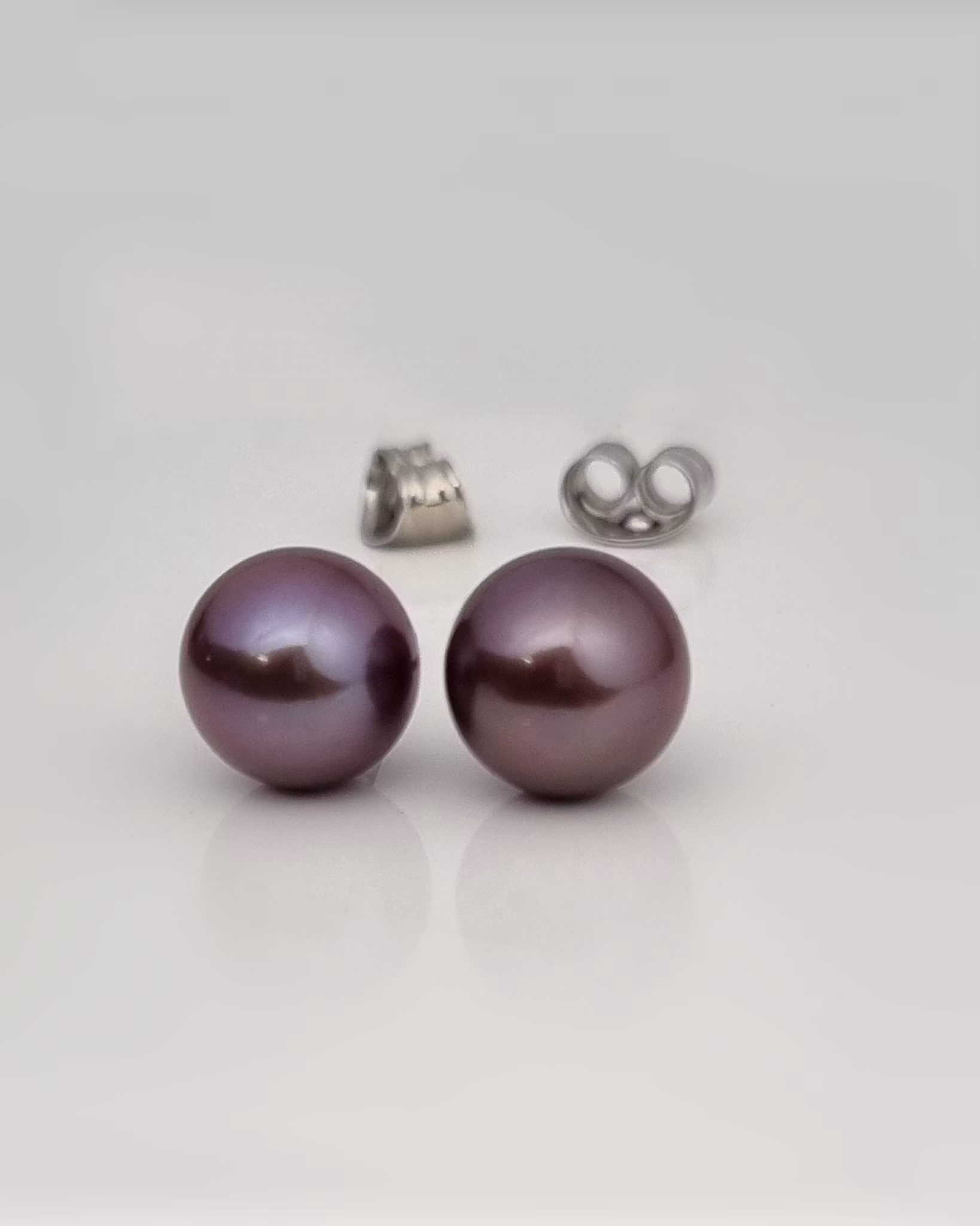 Äkta odlade sötvattenspärlor med mycket ovanlig naturlig djupt violett nyans.