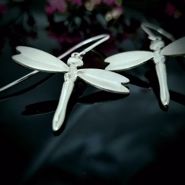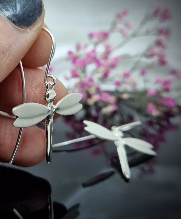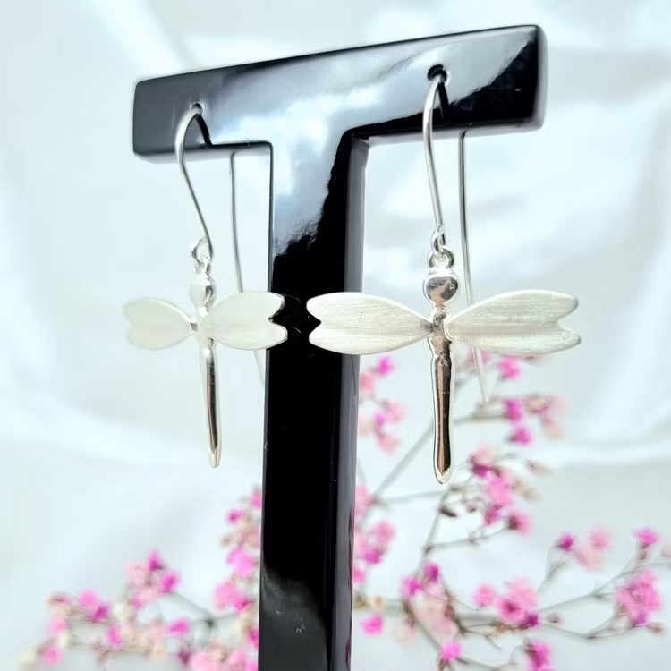 Trollsländor - örhängen i 925 sterlingsilver, ren och enkel form. Med sin storlek blir dessa sländor ett fint vardagssmycke men med lite attityd. Ca 26 x 28 mm. Sländan finns i flera varianter med eller utan ädelstenar och även i guld.