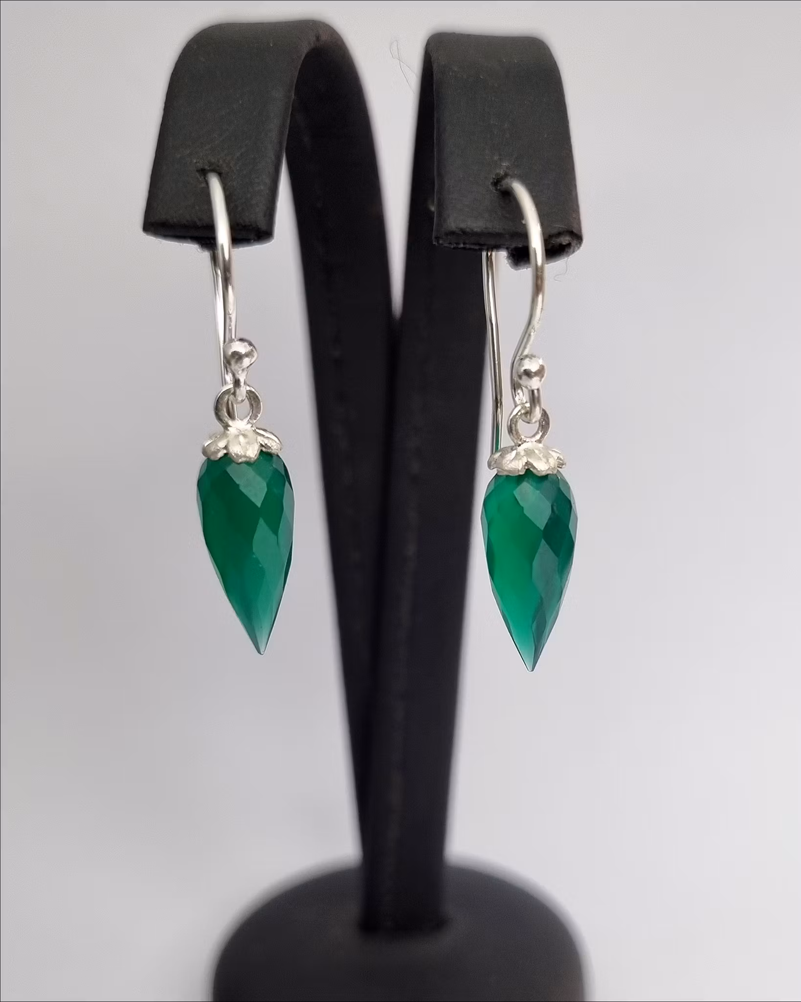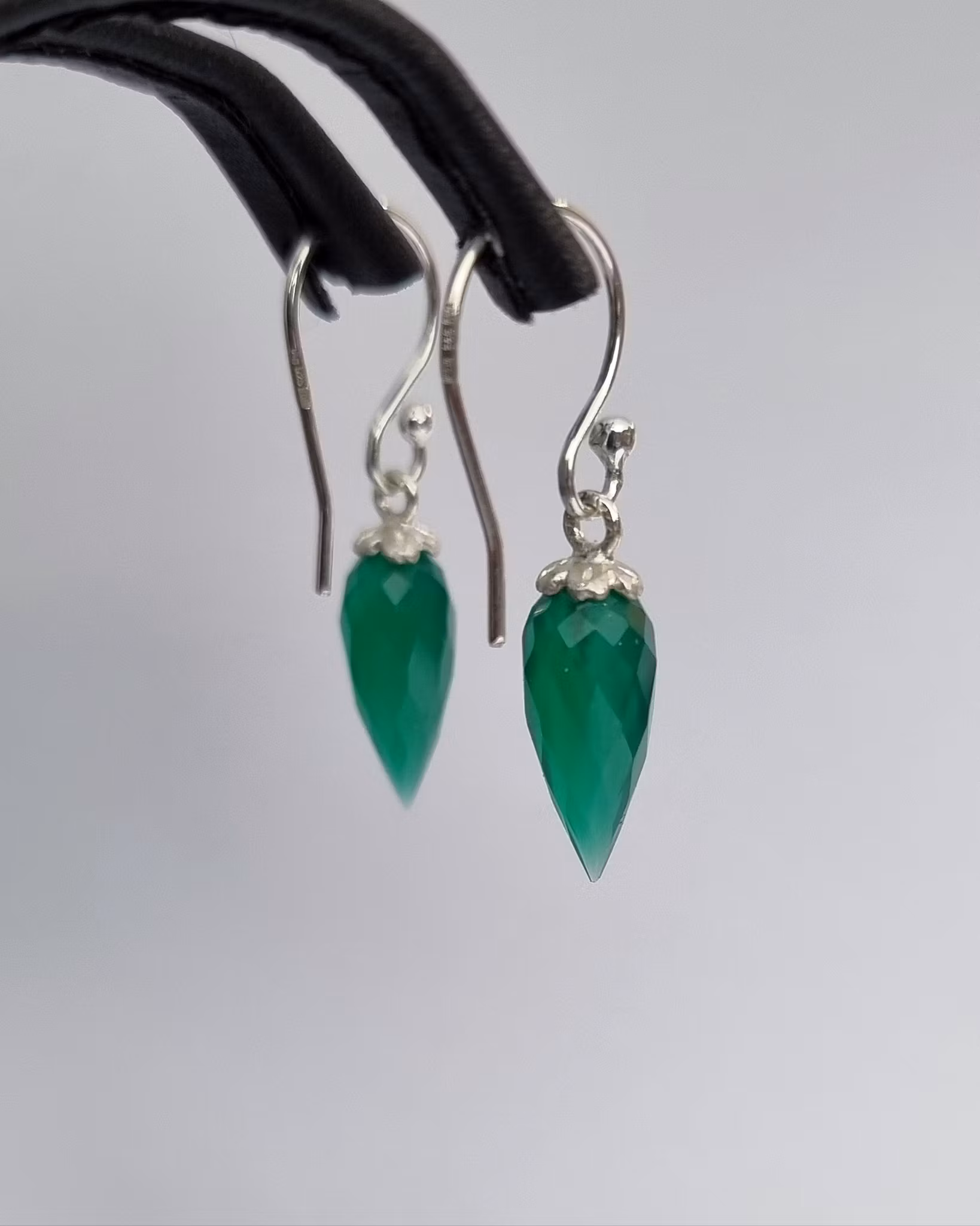 Jättefina gröna Agater med Gullvivafäste i 925 återvunnet silver.