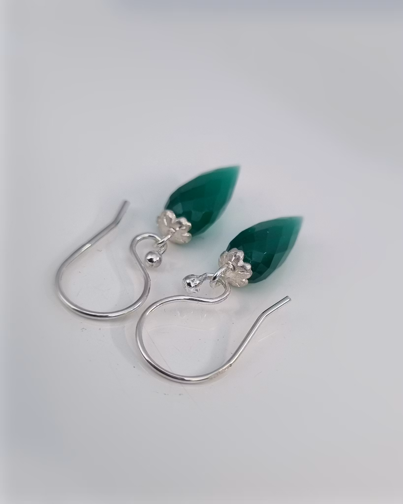 Gullviva med smaragdgrön Agat - örhängen i silver