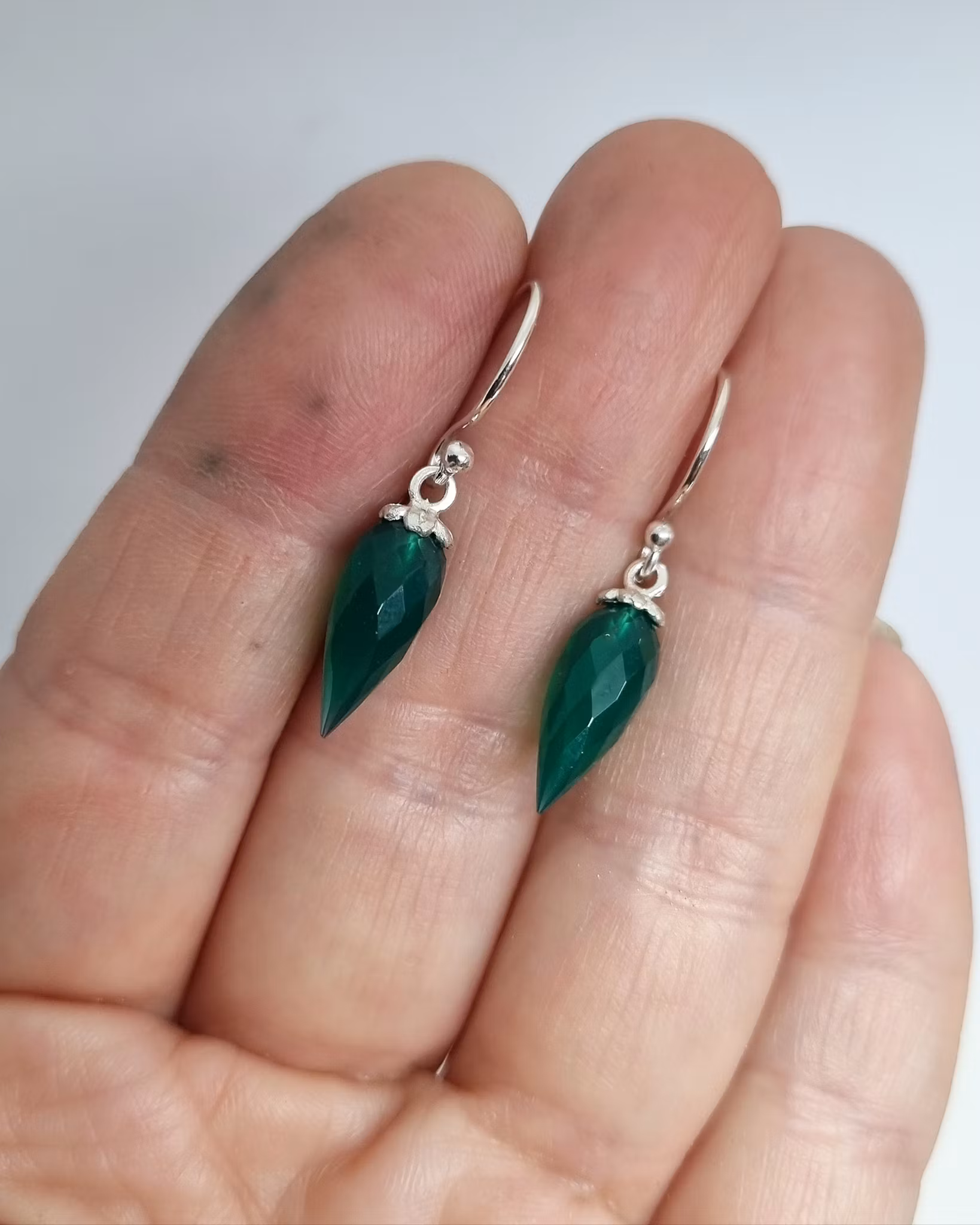 Stenarna har en vacker slipform som är avlång och facetterad med spetsen nedåt.