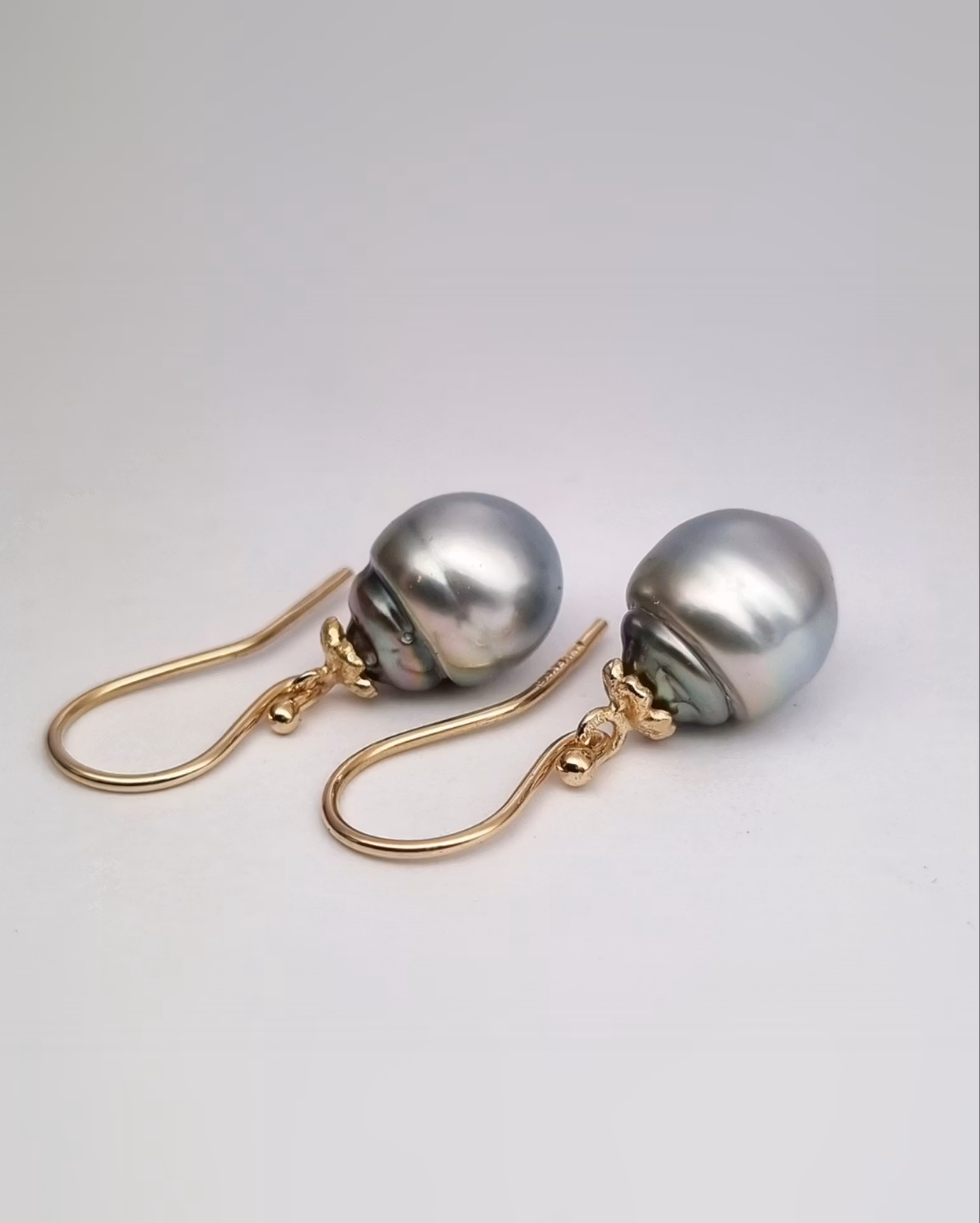 Pärlorna mäter ca 10,3 x 12,2 mm och hela örhänget är ca 29 mm långt inklusive kroken. Fijipärlorna är barocka och har ett skimmer som går i både varma och kalla toner. Certifikat medföljer.