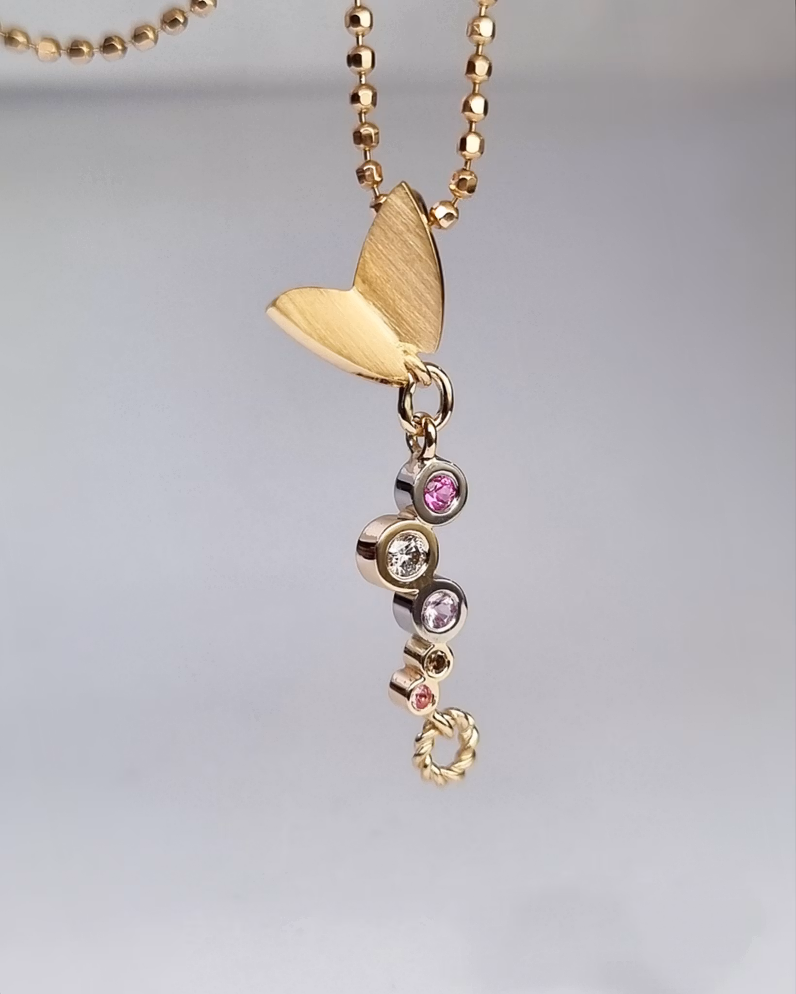 Fjäril med ekipage - 3 i 1 hängsmycke i 18K
