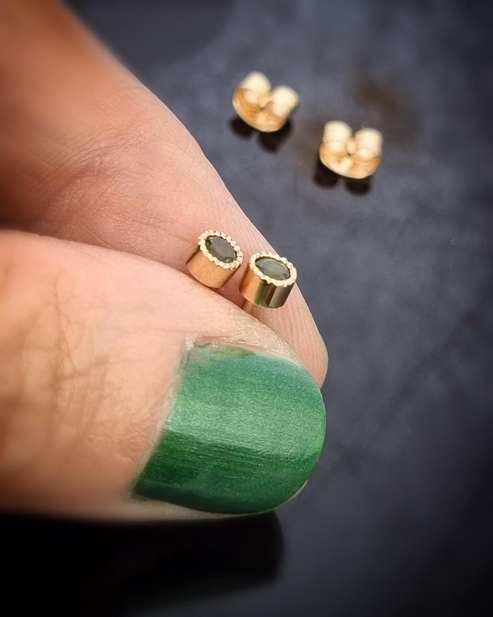 Örhängena är perfekta till vardags då dom varken är gör små eller för stora. Fattningarna har en dekorativ miligrifkant och de mäter 4 mm i diameter.