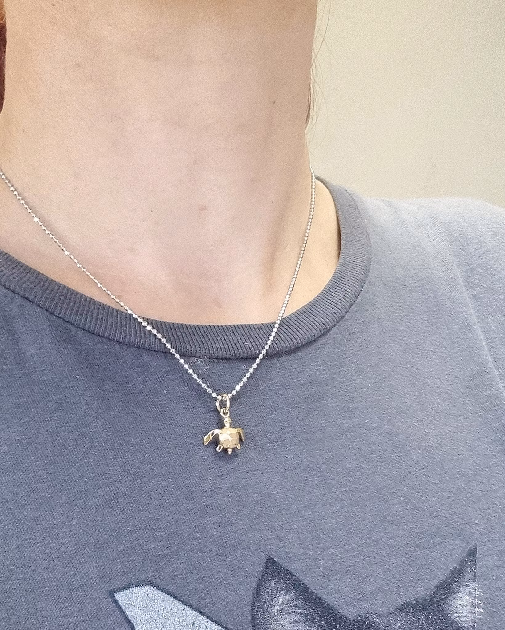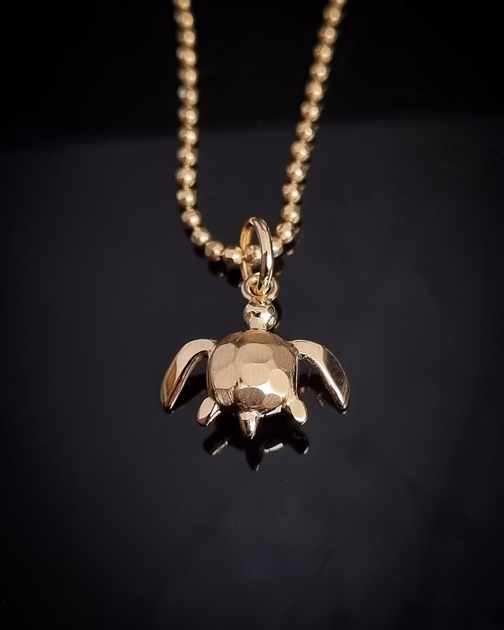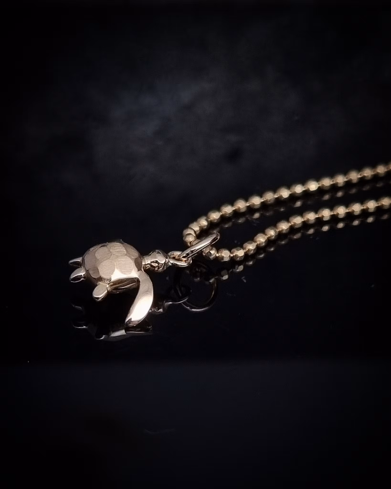 Liten och söt Havssköldpadda tillverkad i 18K återvunnet guld.