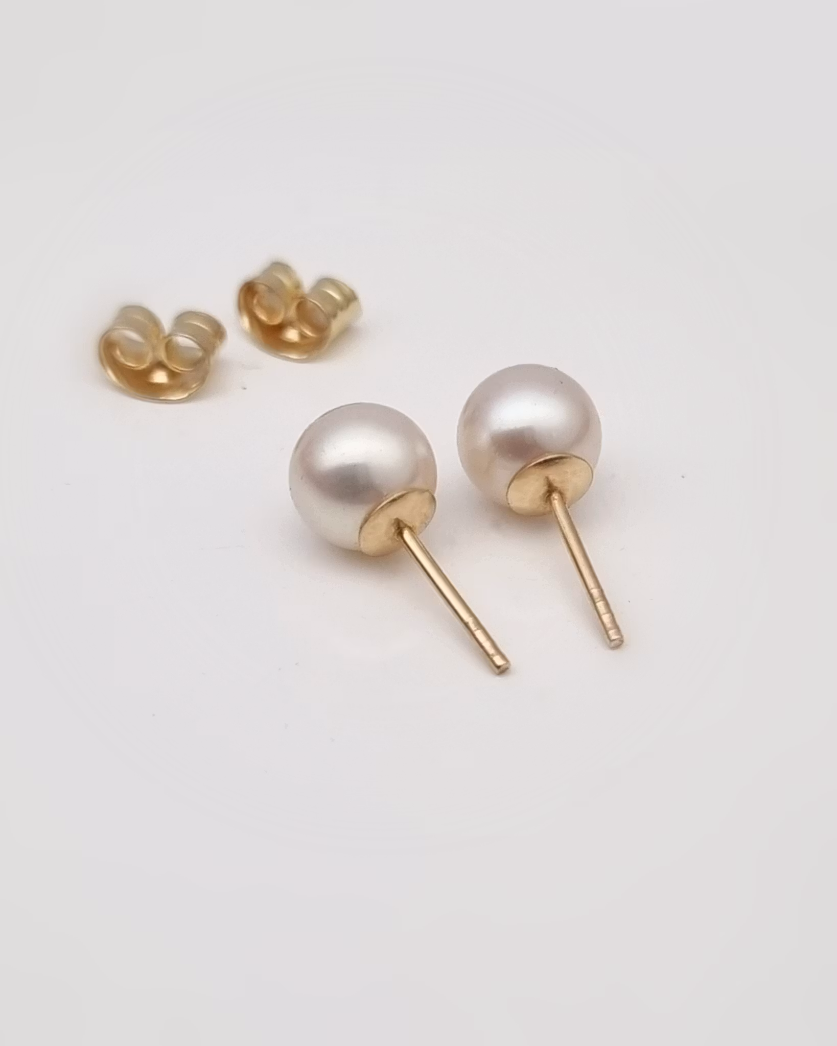 Dessa pärlor mäter 7 mm i diameter och är runda och släta med en mycket hög lyster. Kanske den perfekta presenten, då det "inte kan bli fel" med ett par vita pärlor. Dom passar bra till vardags, dom går att ha i flera storlekar, dom går att ha tillsammans med i stort sett vilka kläder, frisyrer, övriga smycken som helst!