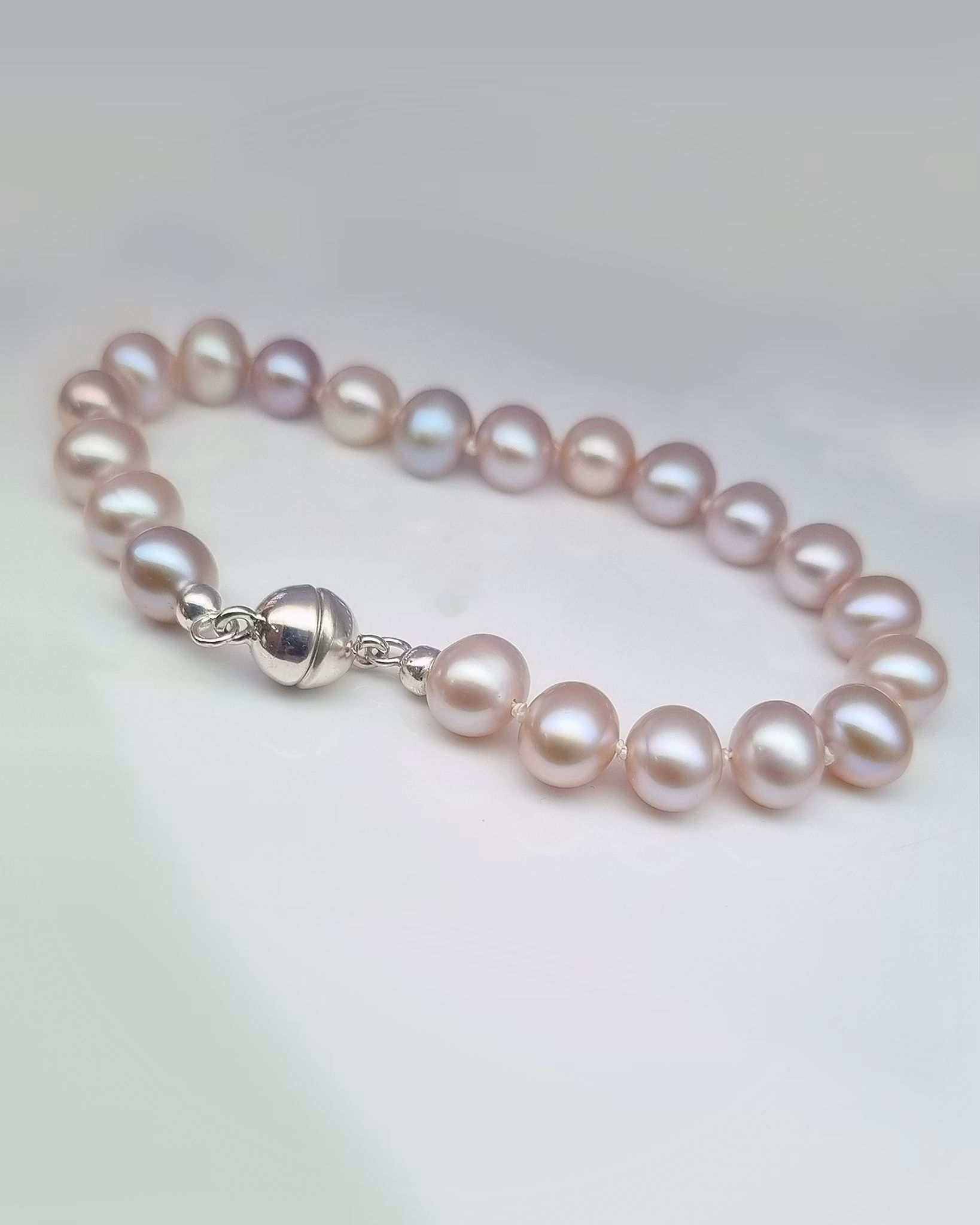 Naturligt ljust askrosa Sötvattenspärlor - armband 18-20 cm