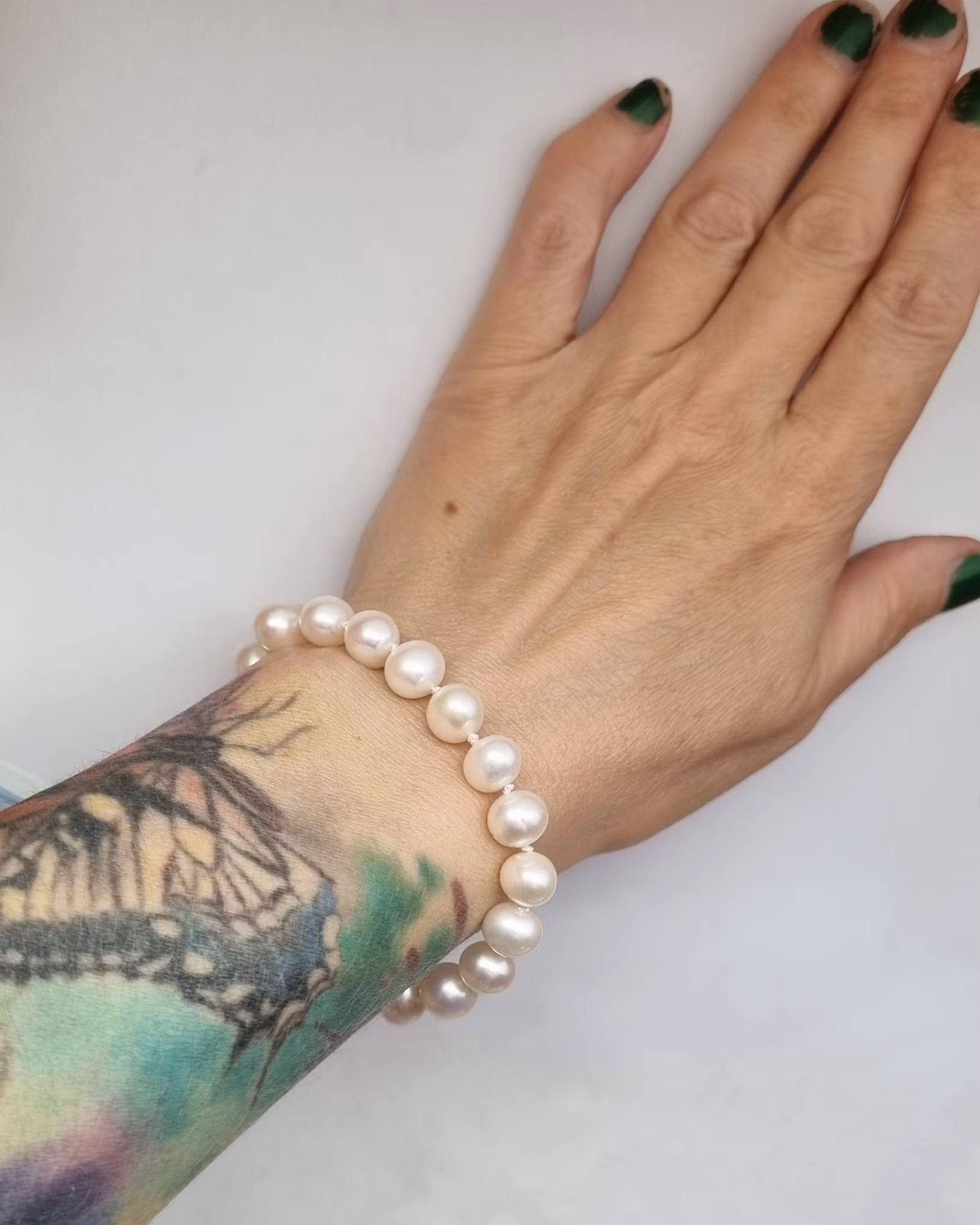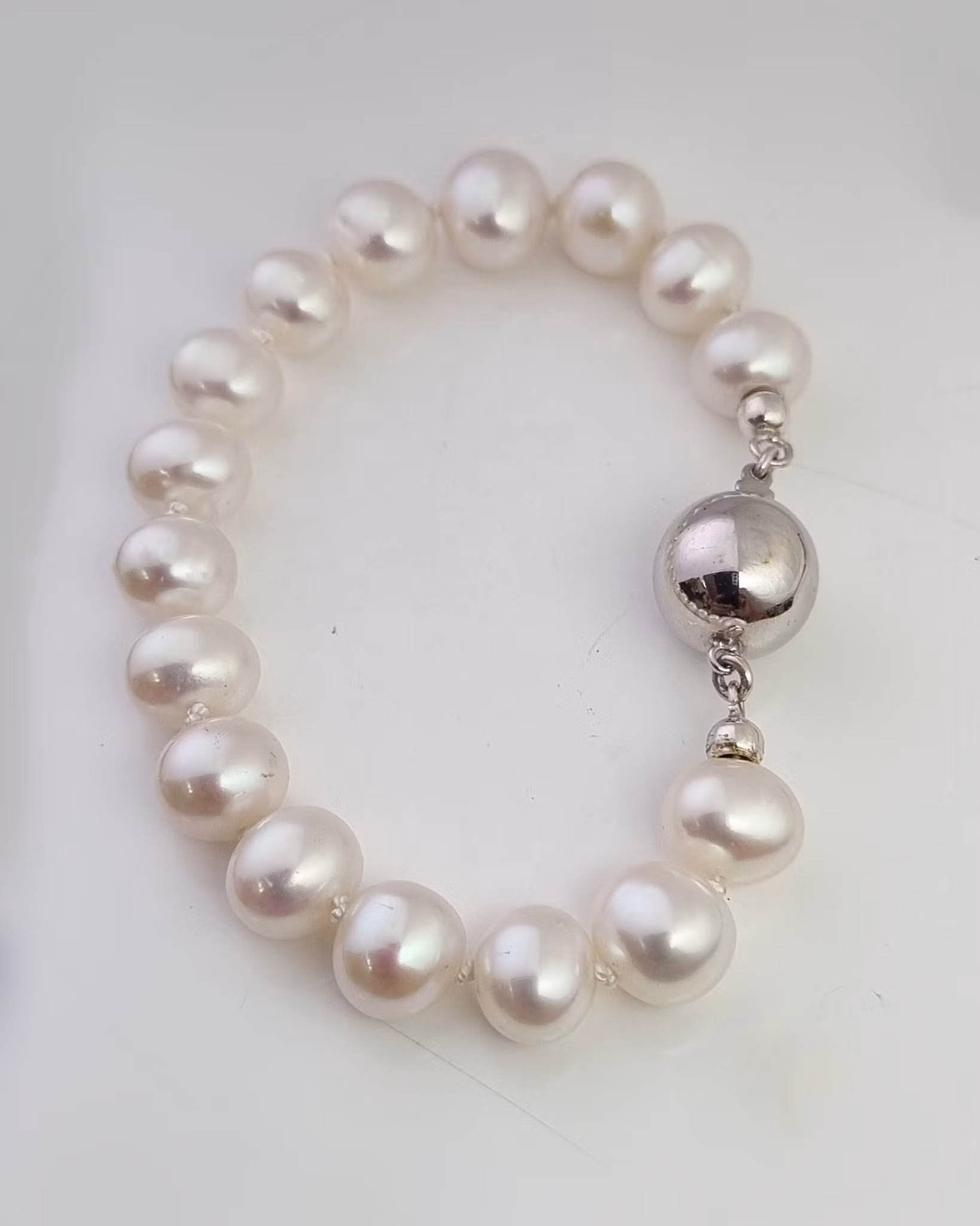 Pärlarmband med vita Sötvattenspärlor 9,5-10 mm - 18 cm