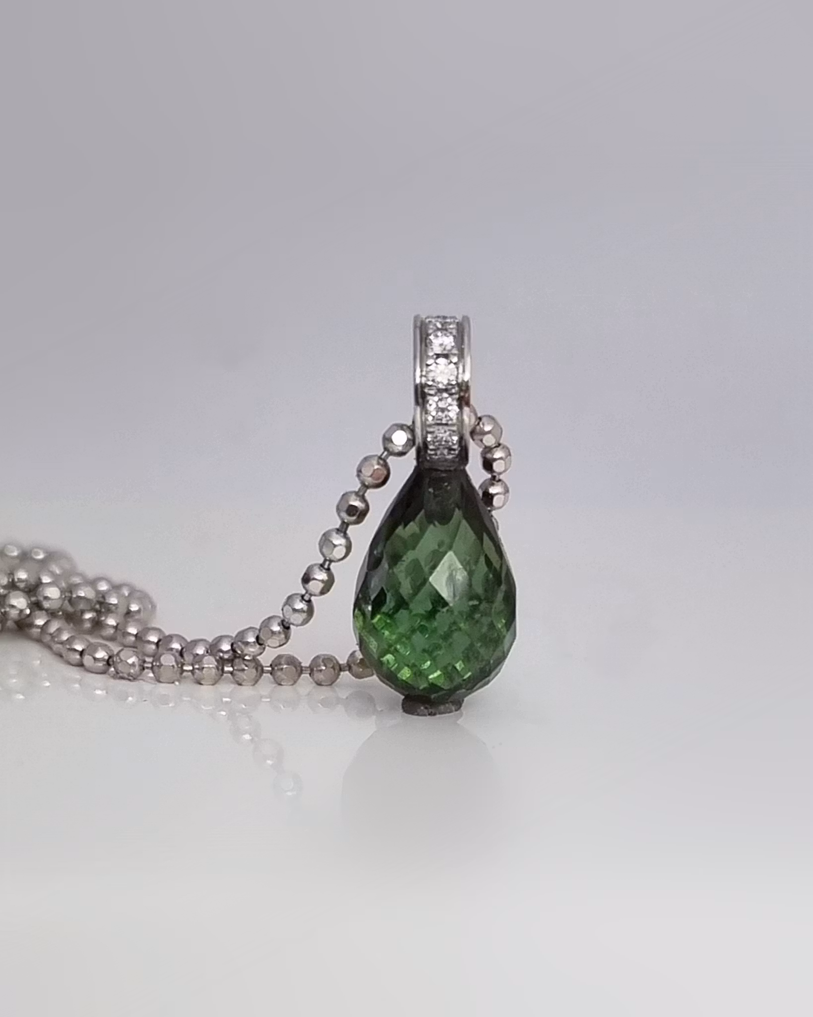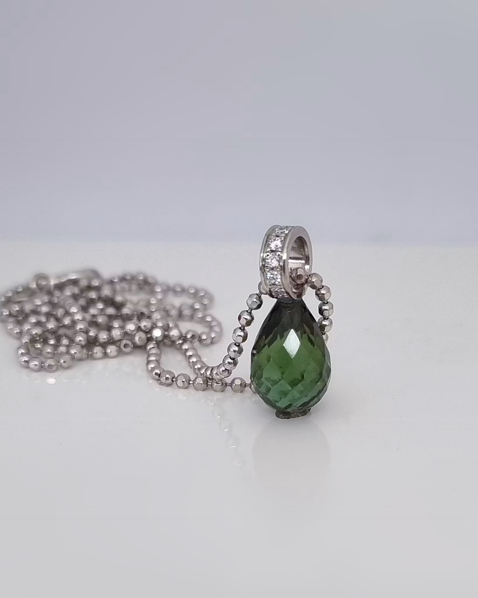 Unikt hänge med Turmalin & briljanter i återvunnet 18K vitt guld.