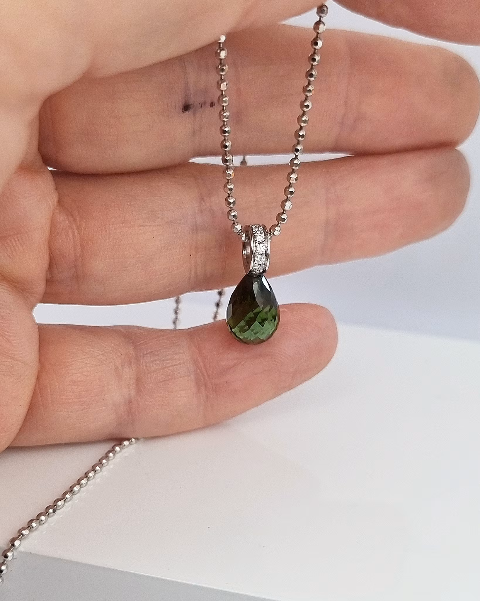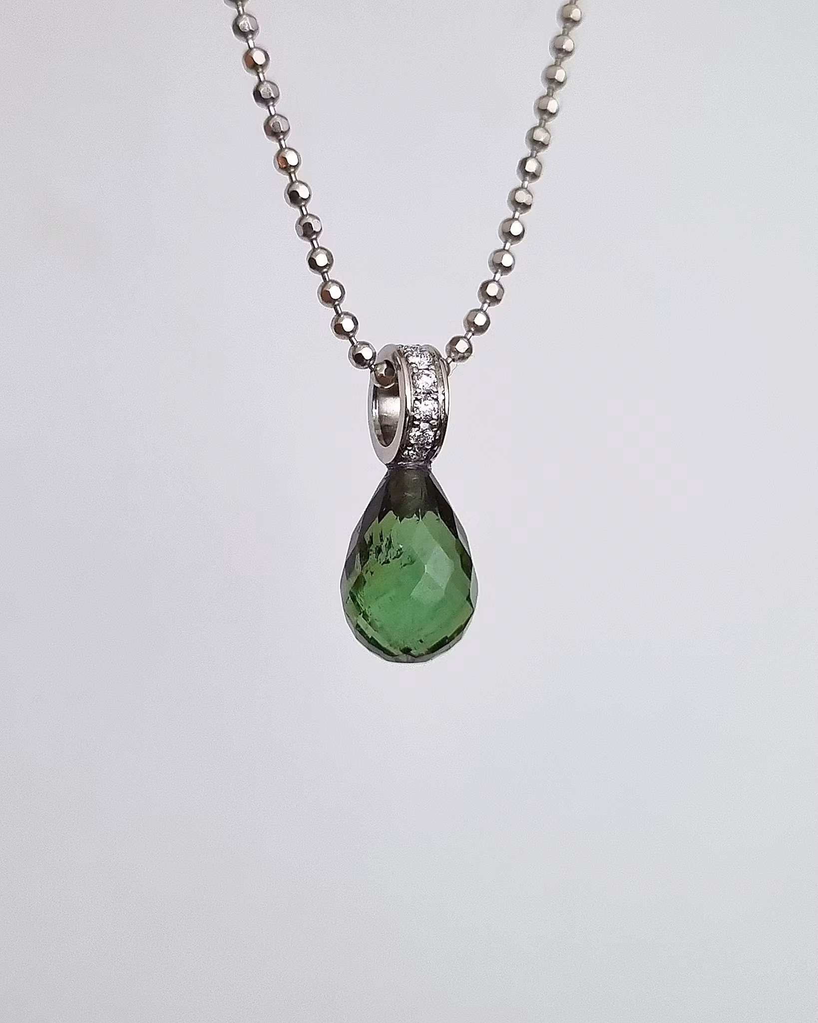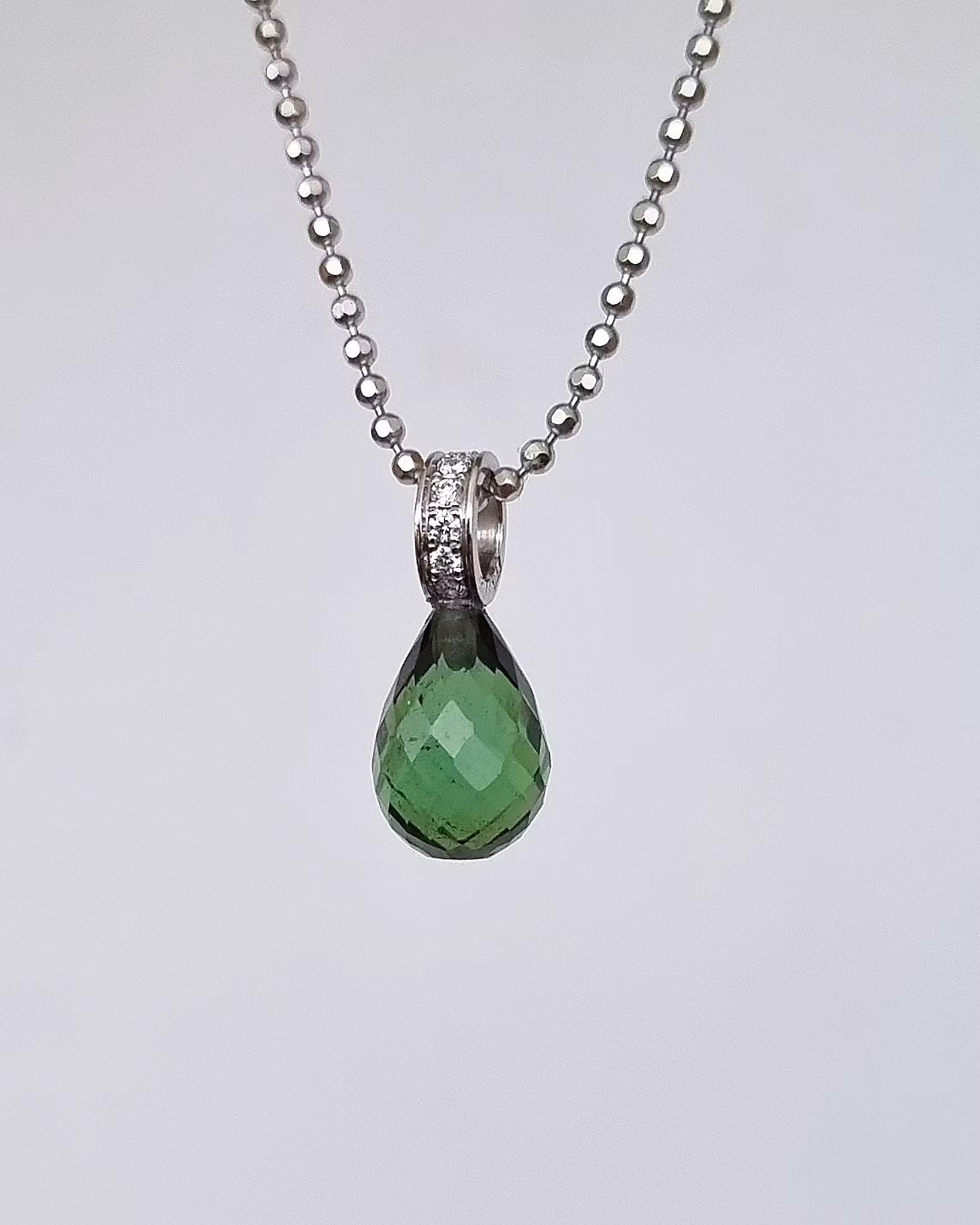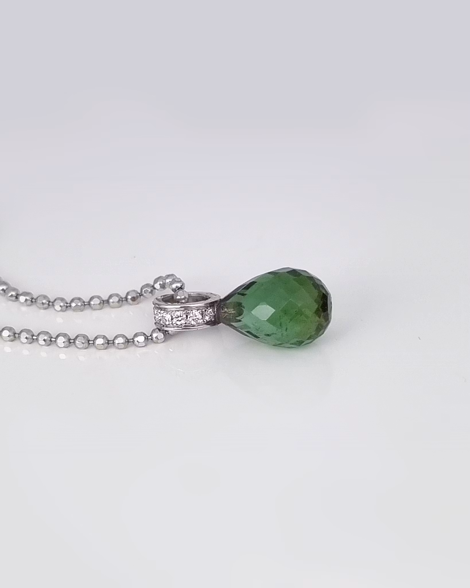Sällsynt grön Turmalin med briljantögla - hänge i 18K vitguld