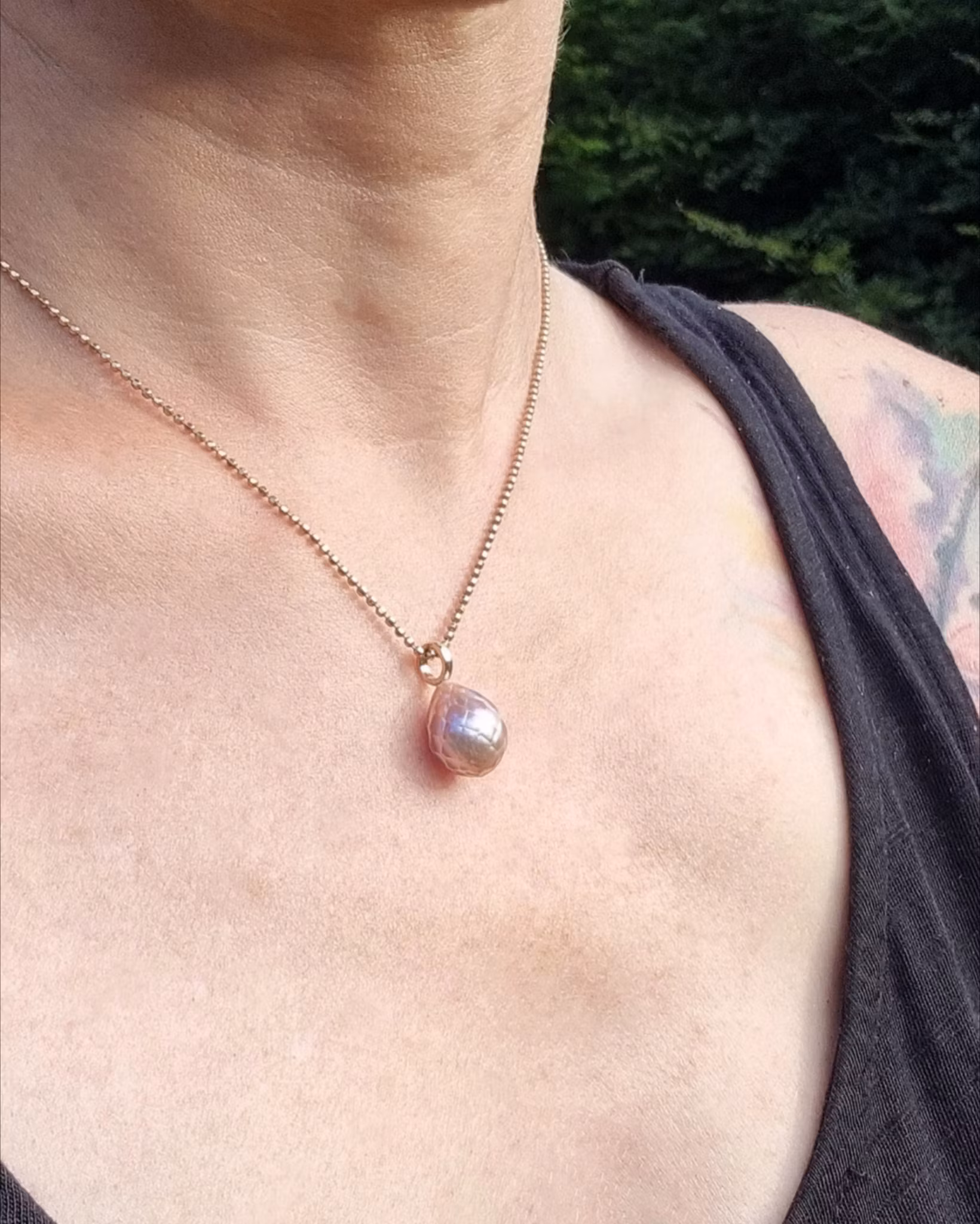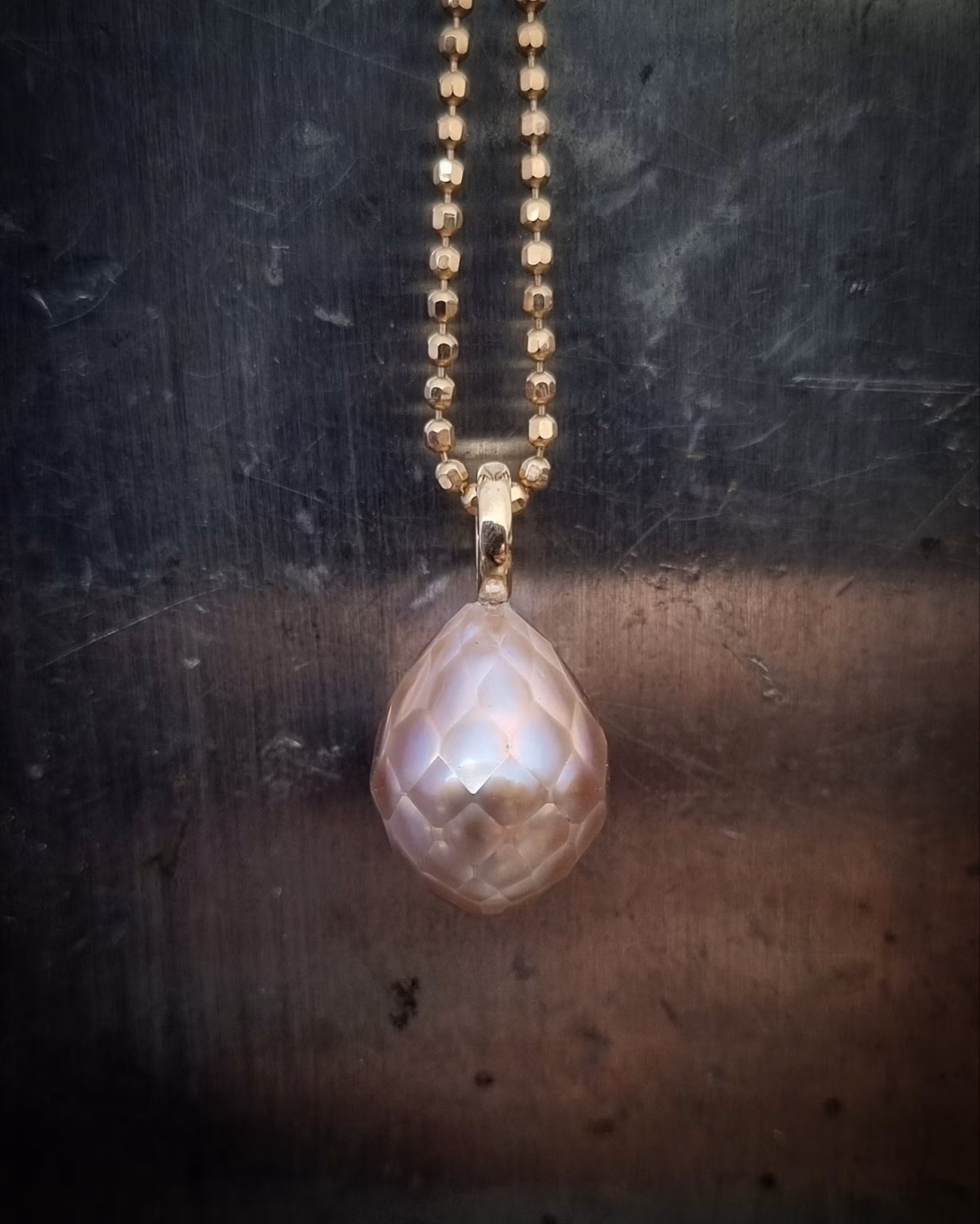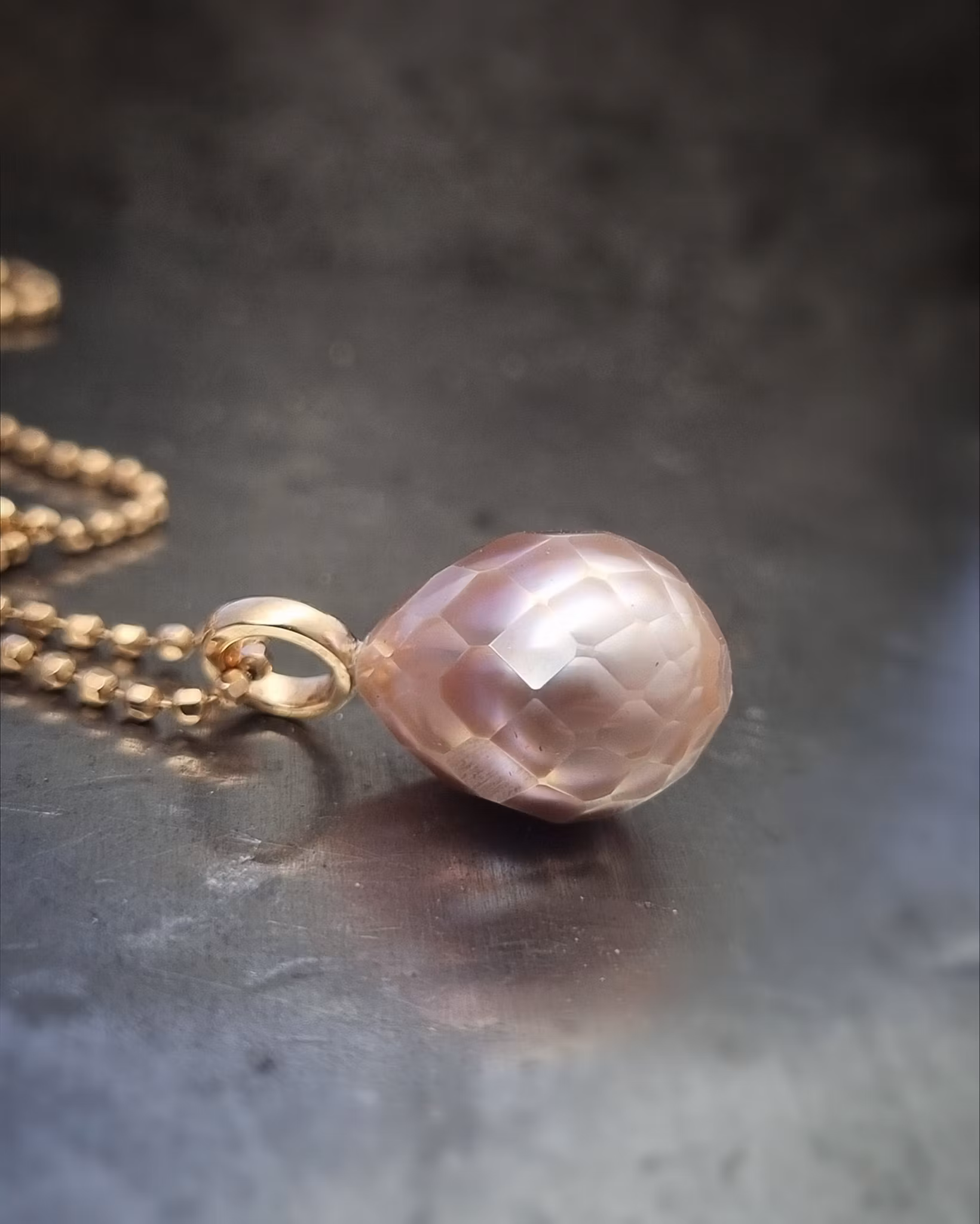 Sötvattensdroppe med facetter - pärlhänge i 18K guld