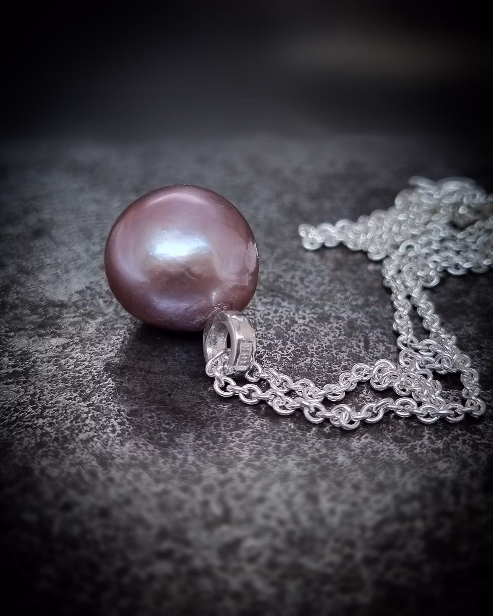 Hängsmycke med en underbar semibarock naturlig askrosa äkta odlad sötvattenspärla. En supertrevlig gammelrosa nyans som är kall i tonen och har ett djupt vackert skimmer. Pärlan har en rund form med en lätt barock yta vilket gör den unik. En lite rejälare pärla, för dig som uppskattar smycken med lite storlek. Jättefin i halsgropen eller på längre kedja.