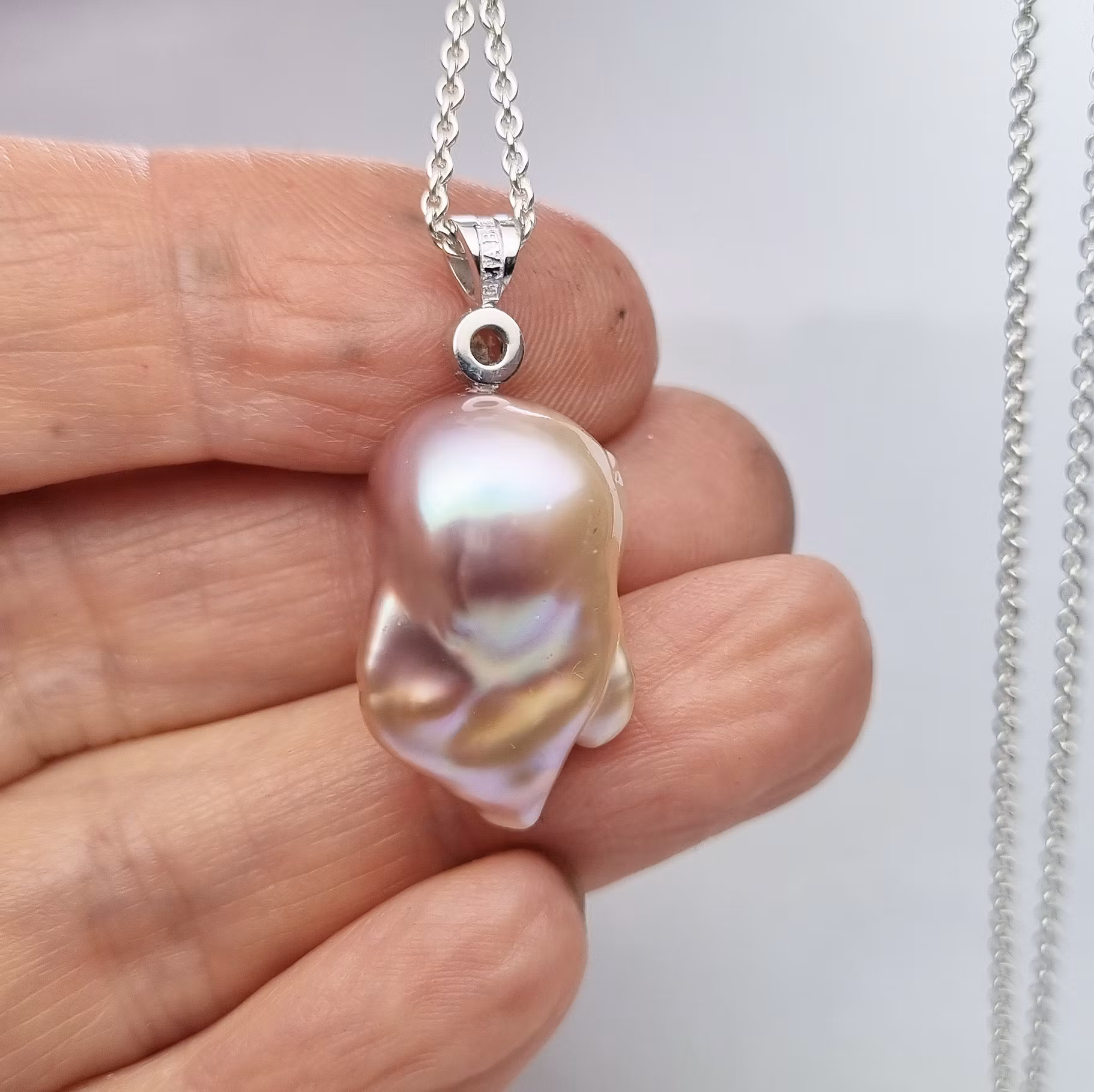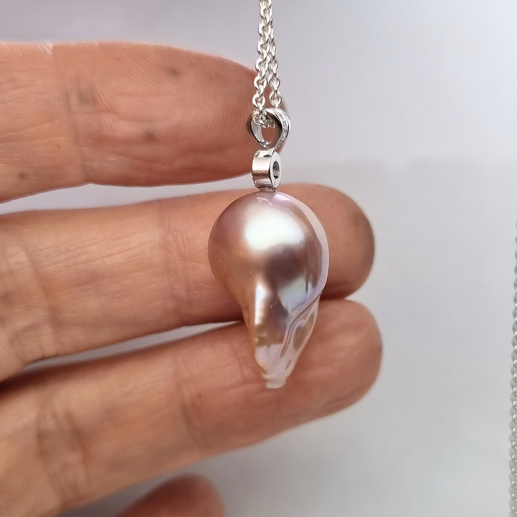 Pärlans mått är 14 x 23 x 14 mm och hela hänget är ca 32 mm långt. Kedja köpes separat -->här<--.