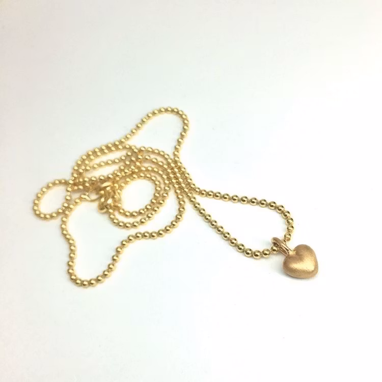 Miniatyrhjärta med bullig mjuk form och sidenmatt yta, tillverkat i 18 K guld. Detta massiva lilla hjärta passar bra att sätta tillsammans med andra hängsmycken eller att ha ensam på en tunn kedja i sin enkelhet, hur sött som helst!