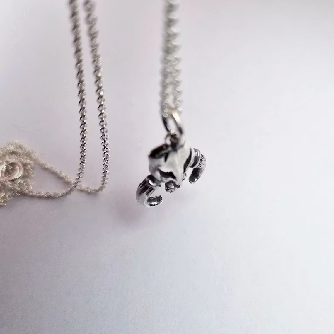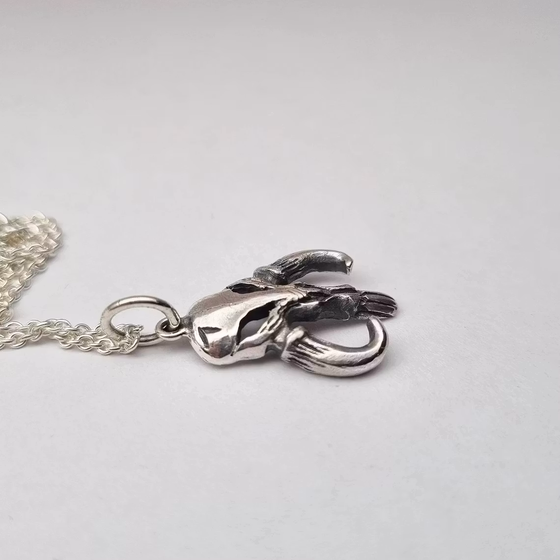 This is my version of the scull of the Mythosaur made in solid 925 sterling silver. I made it to look as authentic as possible and still small and cute in style. It's solid but light and perfect for everyday wear.