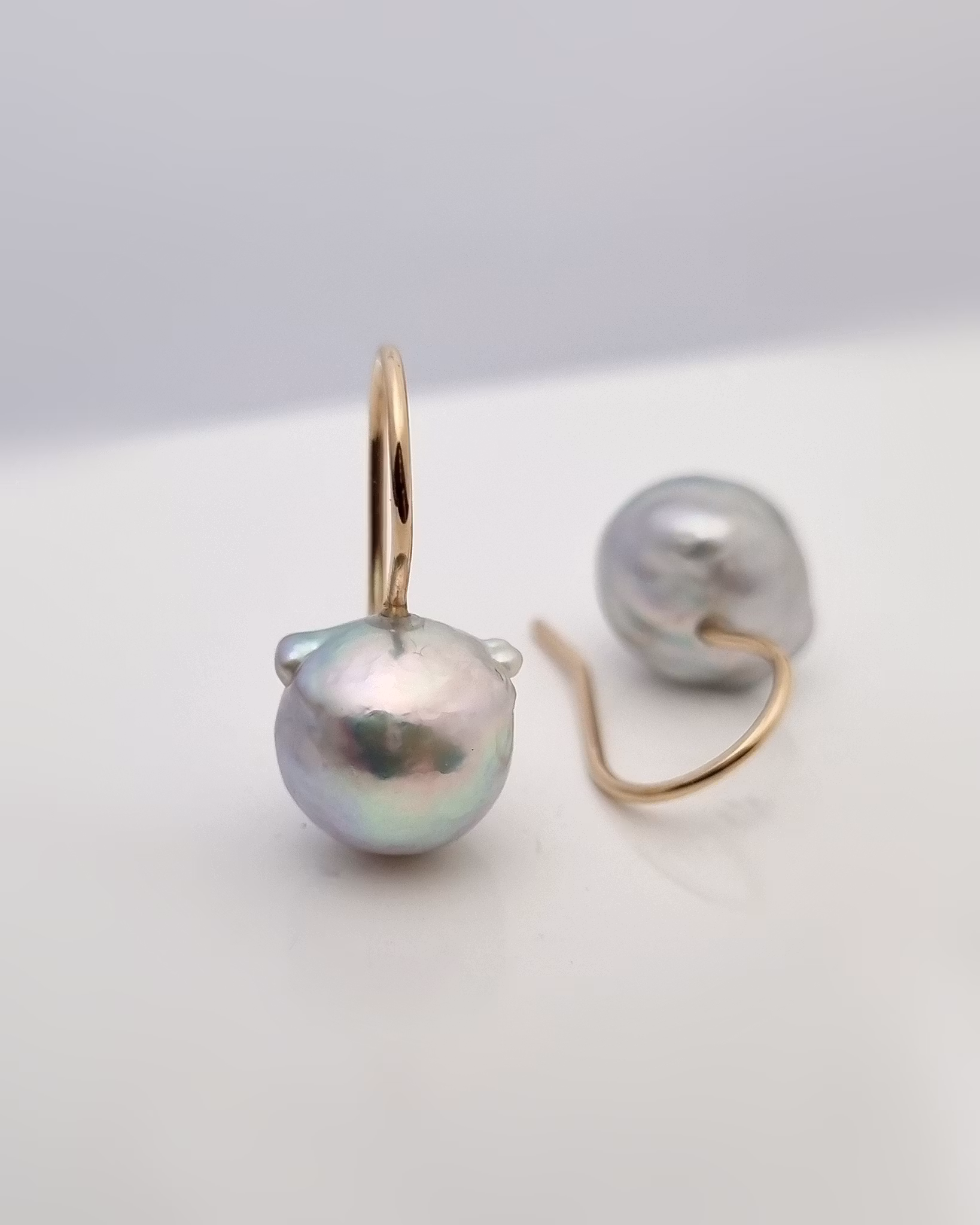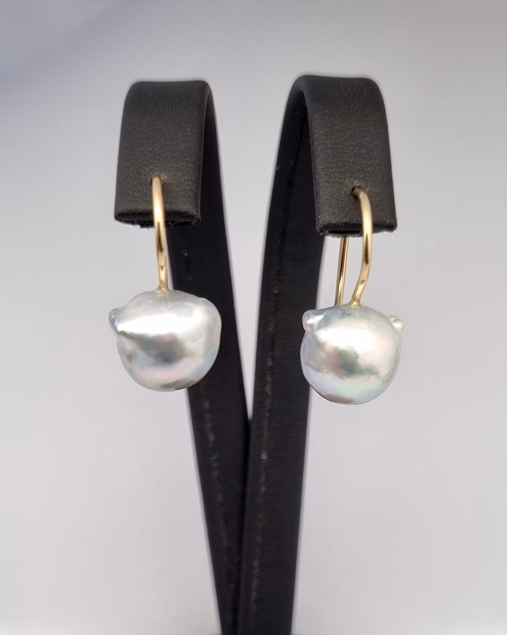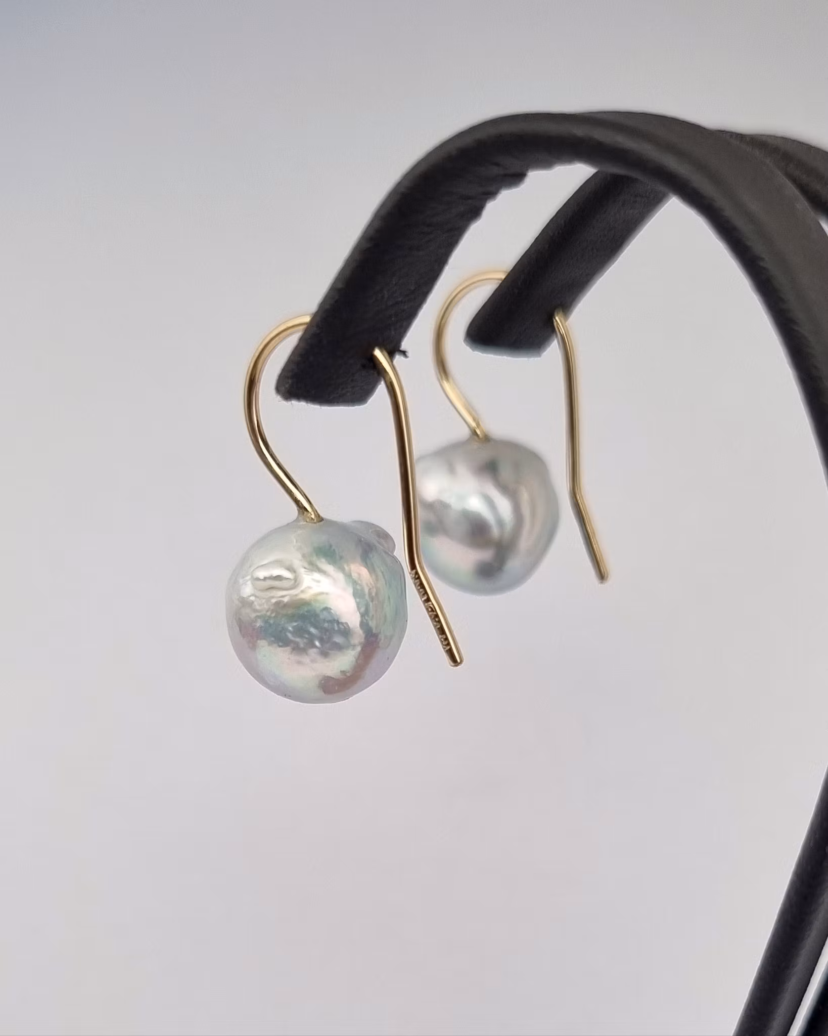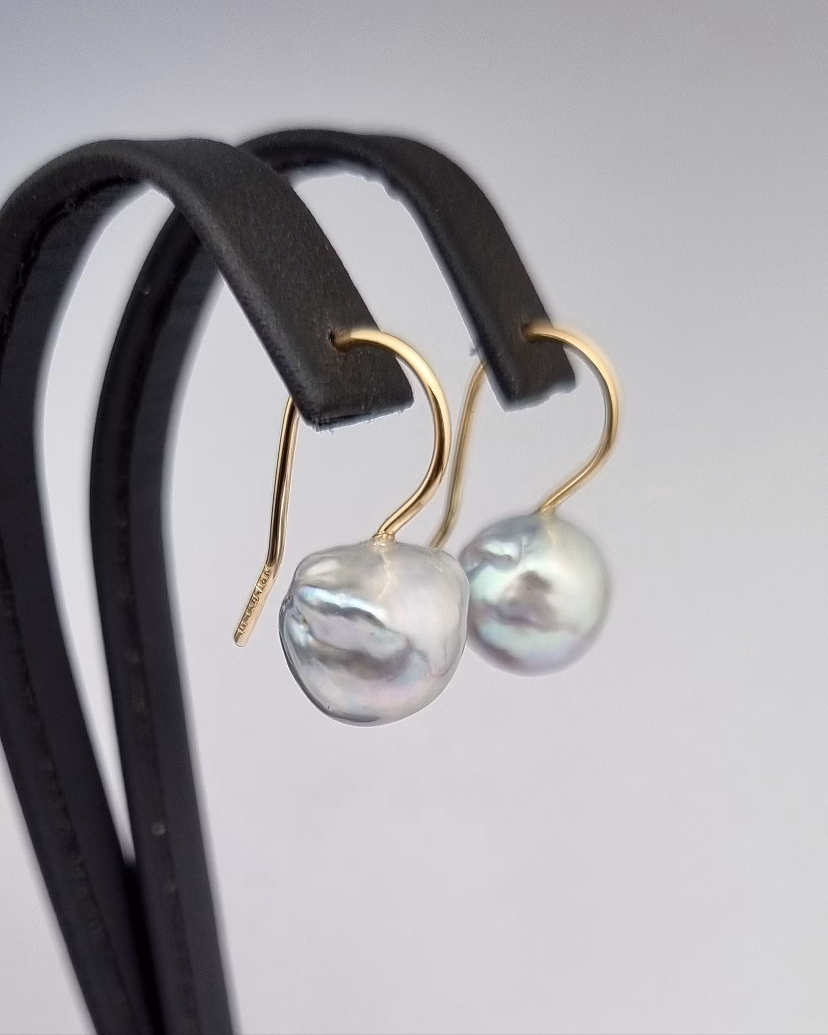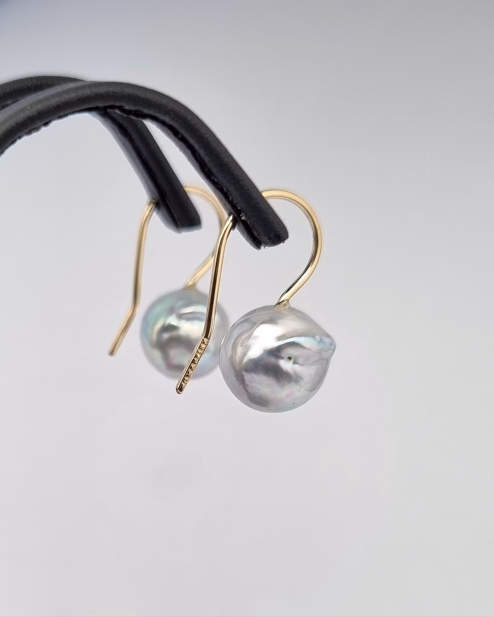 Barocka Akoyapärlor med krokar i 18K guld.