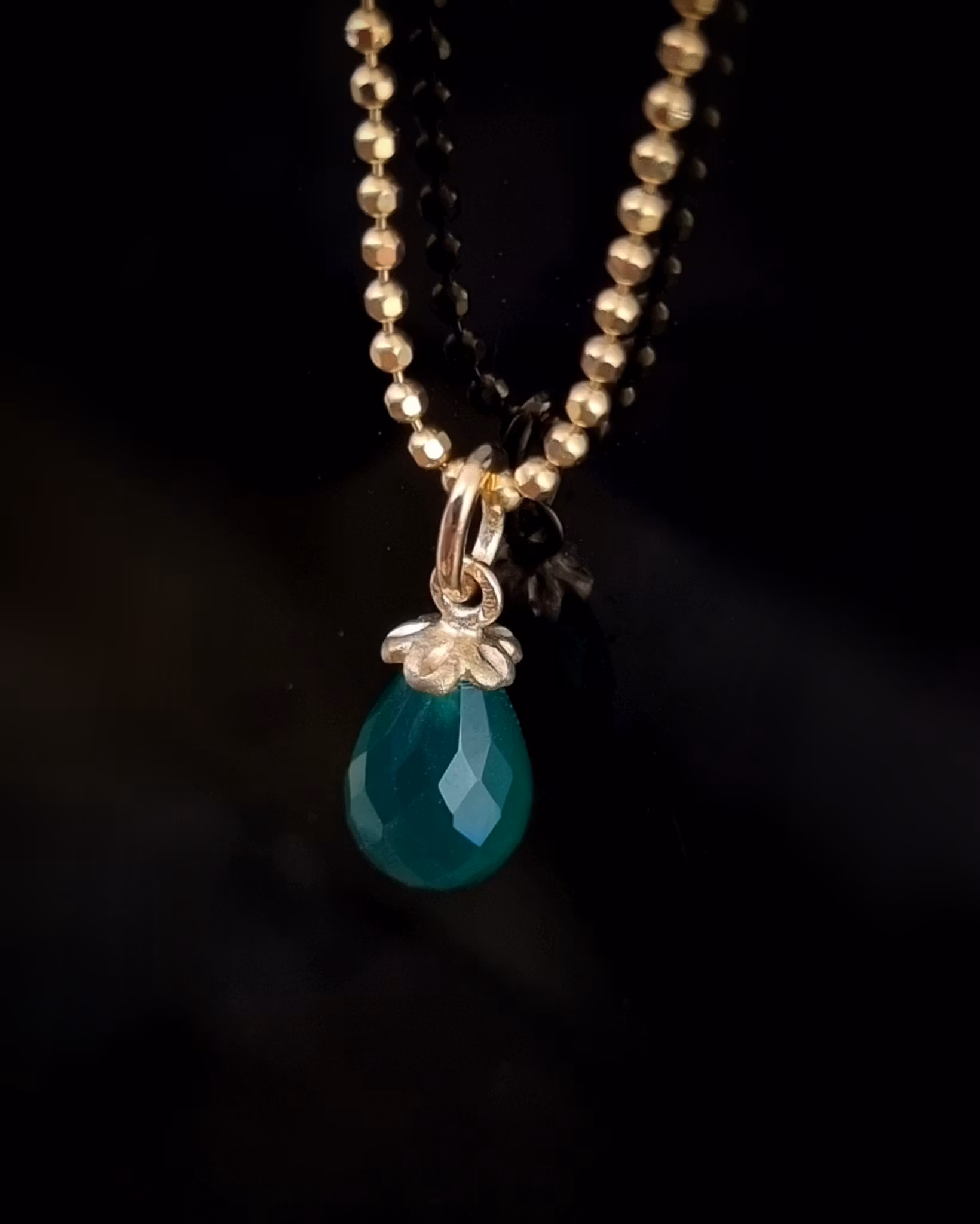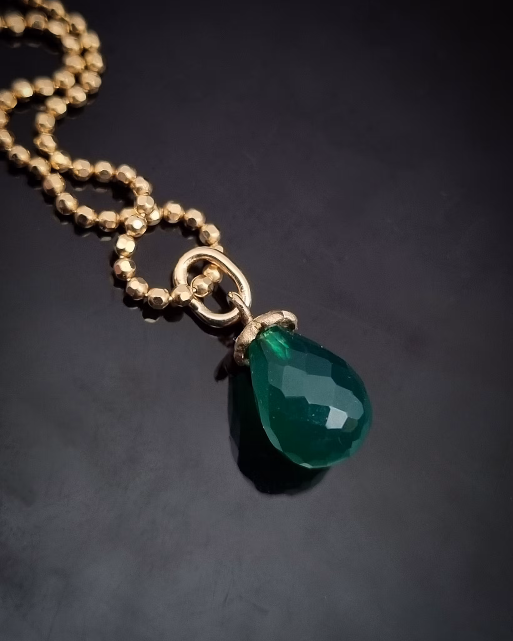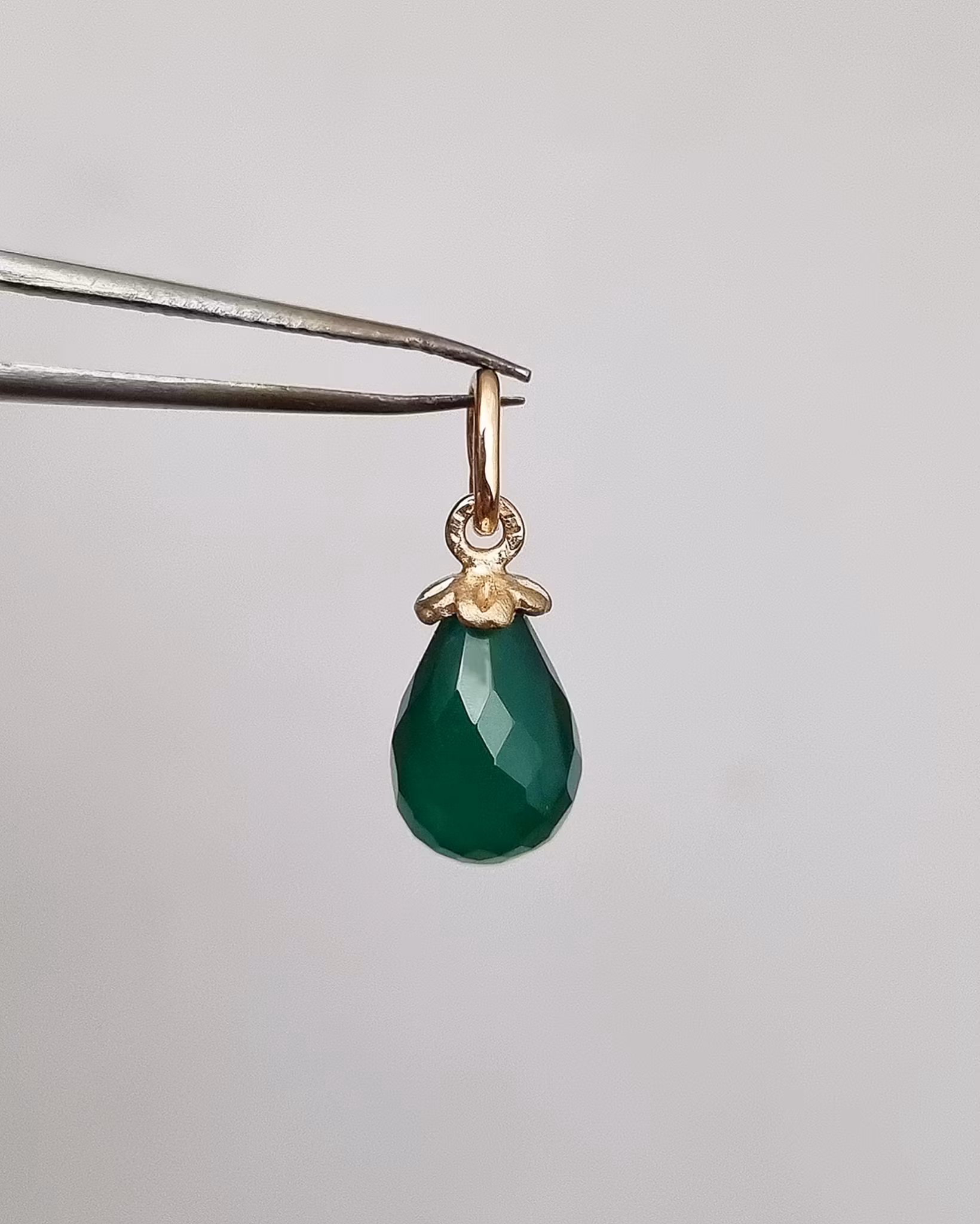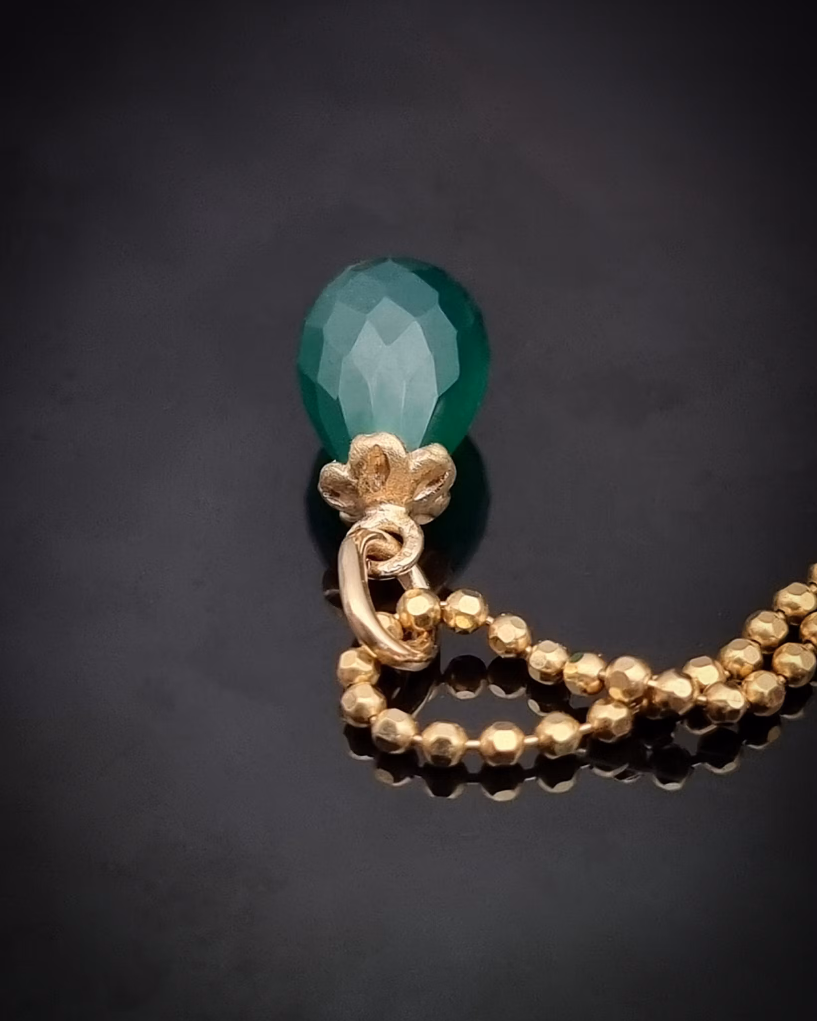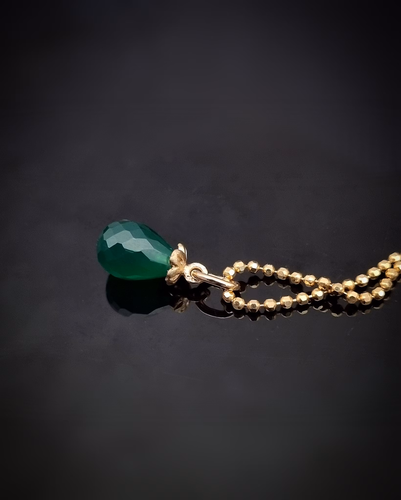 Hängsmycke i 18K guld med en smaragdgrön Agat med briolettslipning.