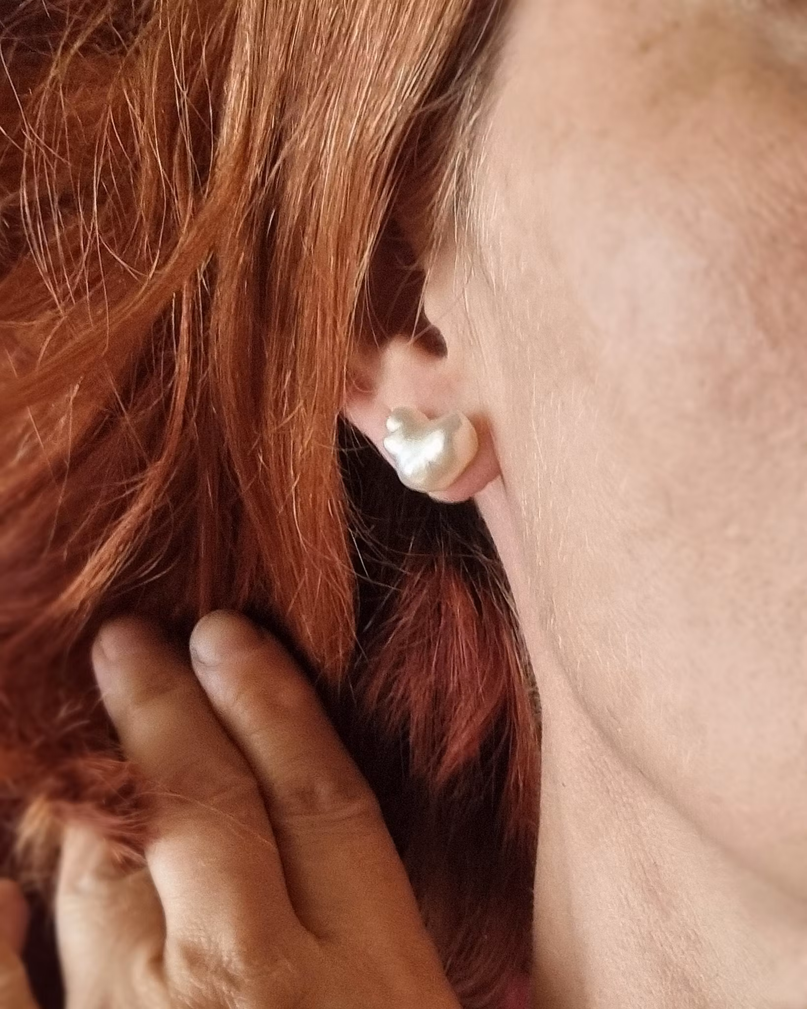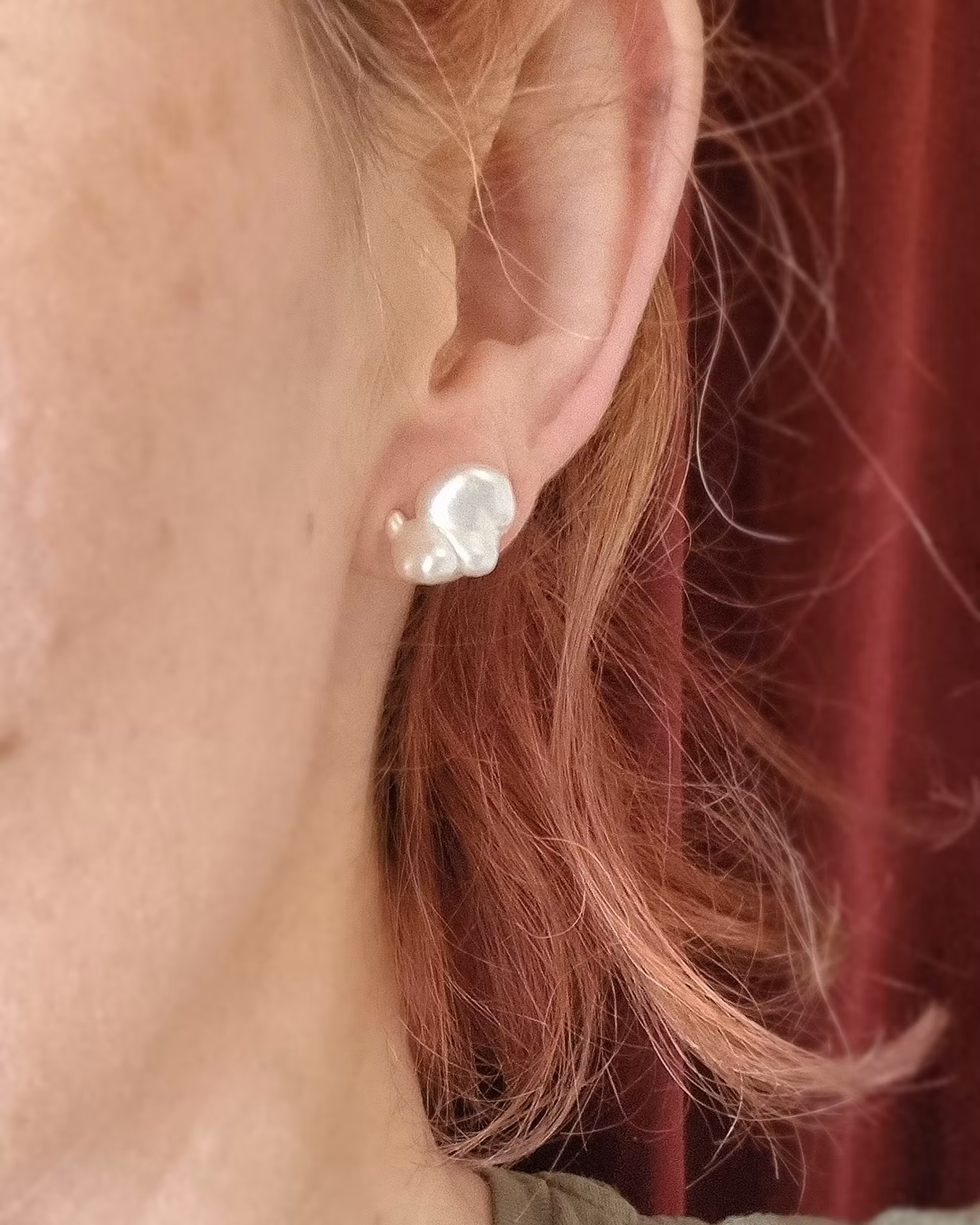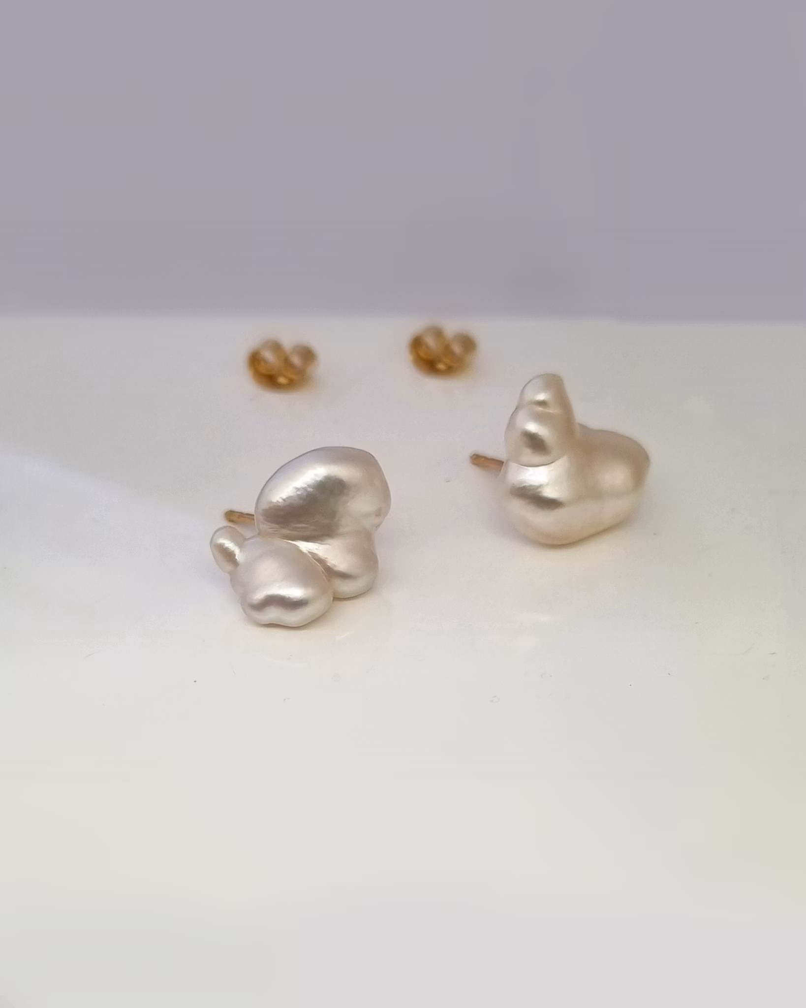 Pärlorna är vita i färgen, unika och har en hög kvalitet (AB). Formen på Keshi är barock och dom har en hög lyster som glimmar i en vacker vit nyans, lite åt det varma hållet. Dessa är fint matchade i storlek, lyster och nyans och paret är vackert oregelbundna såsom naturen skapat dom. Superläckra!