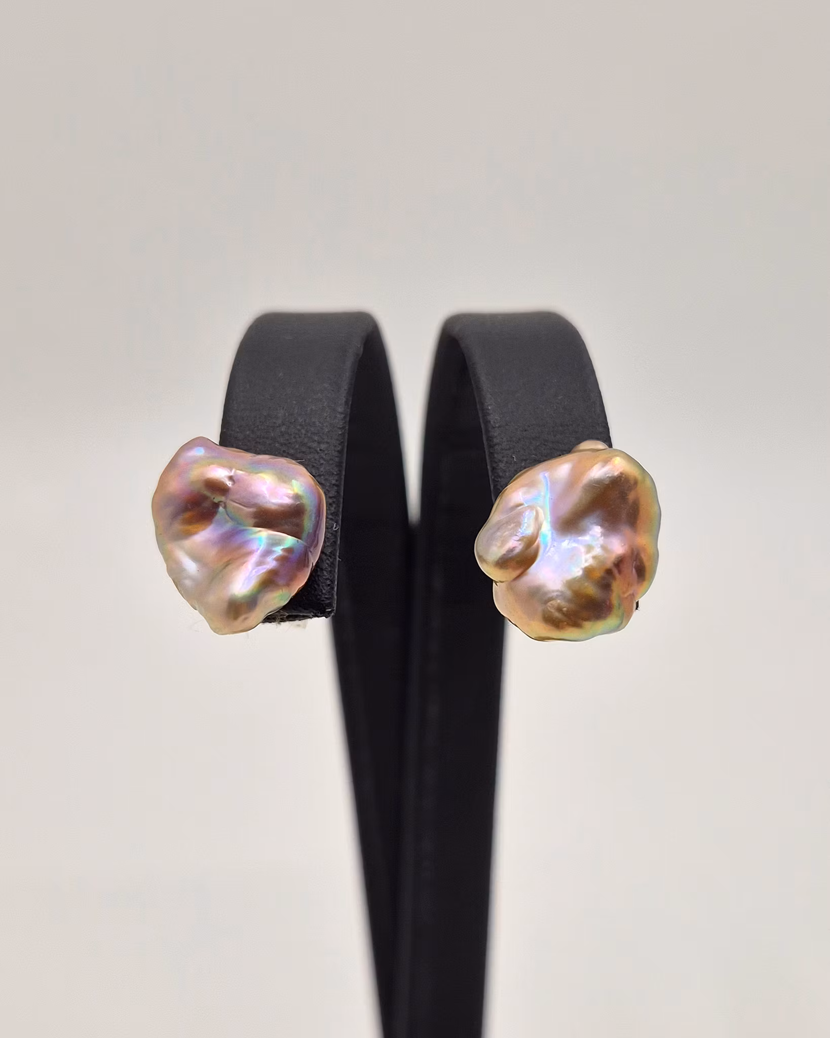 Jätteläckra äkta odlade Sötvattenspärlor med en slags keshiform. Pärlorna är obehandlade och naturliga i färgen.