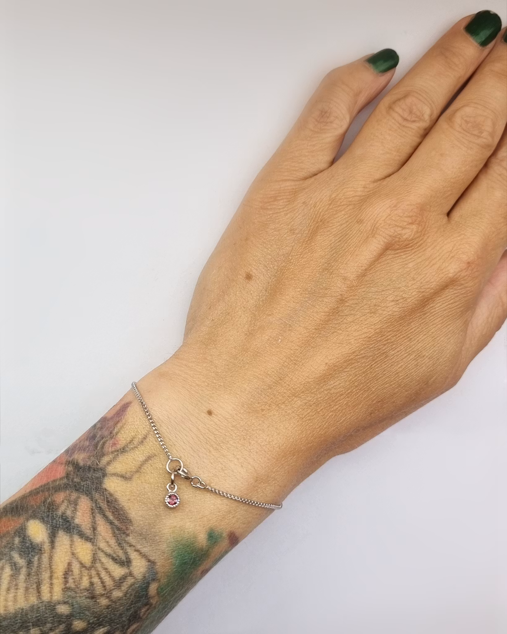 Ett nätt armband i 18K vitguld med en liten rosa Turmalin som berlock.